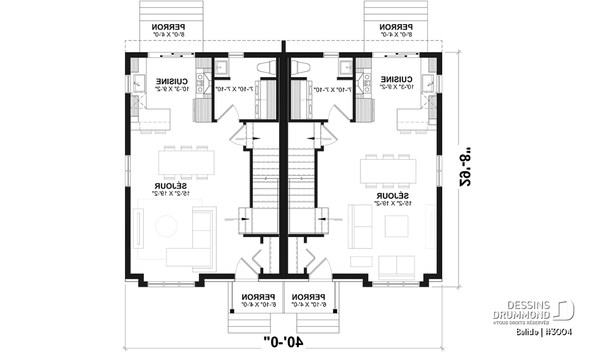 Largeur 40'0" Profondeur 29'8"