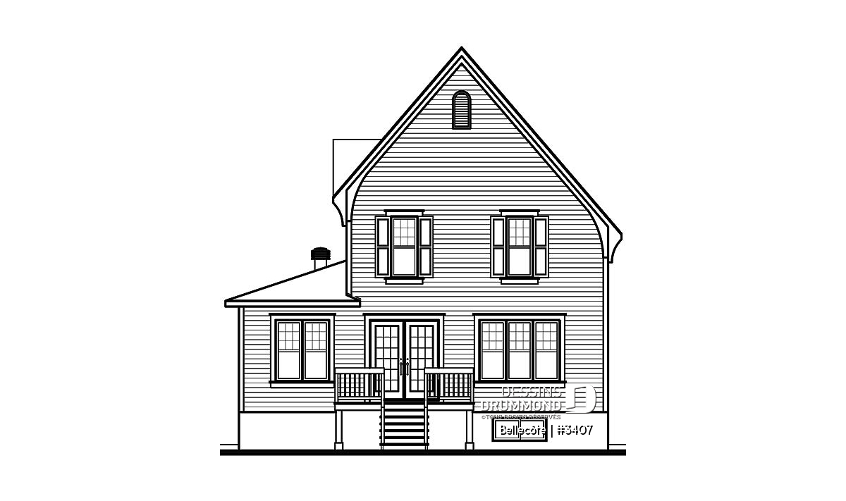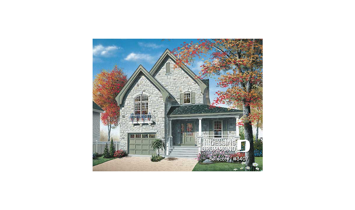 Voici une maison fort originale, pensée pour des terrains étroits et offrant un cachet champêtre indéniable avec sa galerie avant confortable et son recouvrement mural de briques/pierres en façade principale.