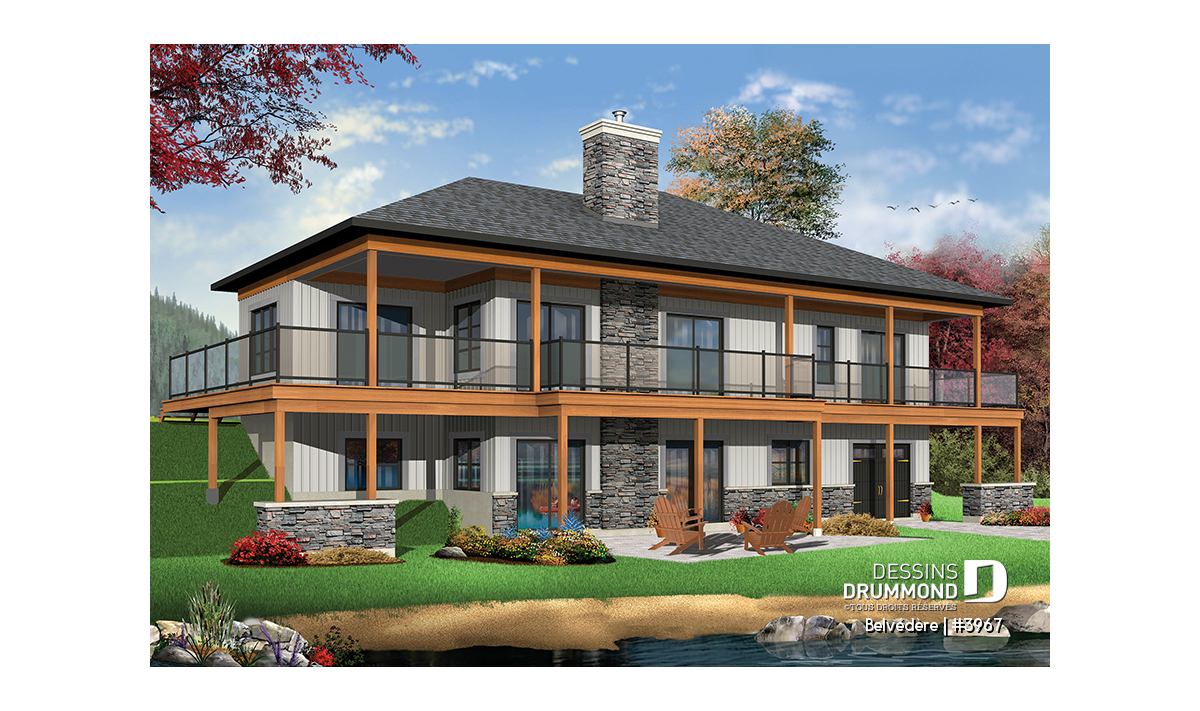 Ce modèle de chalet de style rustique aux commodités bien contemporaines offre 4 chambres et deux salles familiales avec foyer.