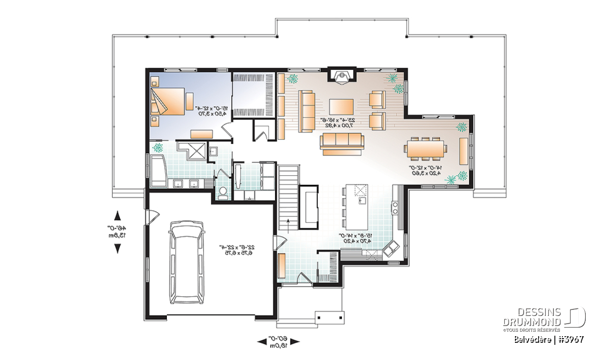 Au rez-de-chaussez, deux entrées sont prévues, de l'avant et du garage, ainsi qu'un grand garde-robe de style walk-in pour le rangement des manteaux et articles de sport tels que les skis et les raquettes! Puis un grand îlot avec espace cellier est prévu, ainsi qu'un garde-manger de bon format. Les espaces sont ouverts entre la cuisine, la salle à manger et la salle de séjour, permettant ainsi de rester en contact avec ses invités, tout en préparant les repas. Une suite chambre des maîtres avec grand walk-in et salle de bain privée ainsi qu'un accès au balcon, complètent ce plancher fort logeable et attrayant.
