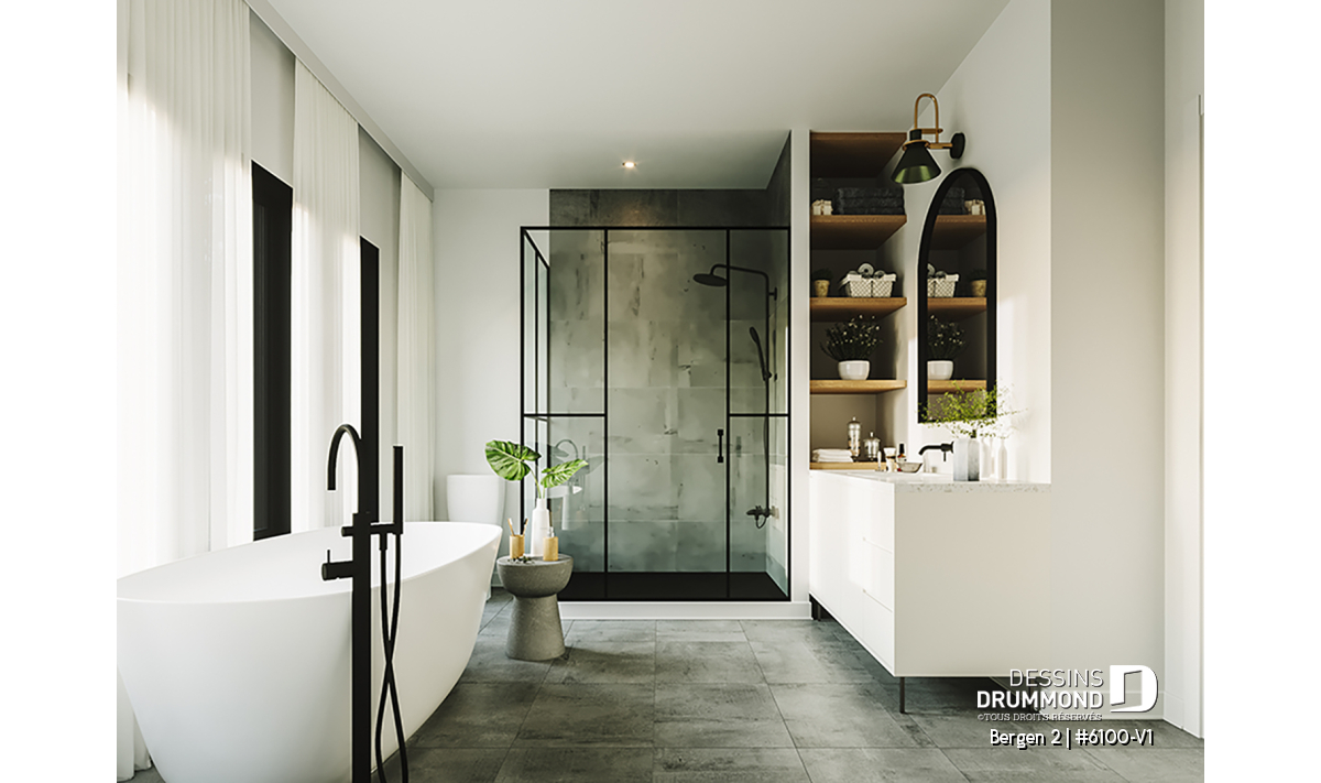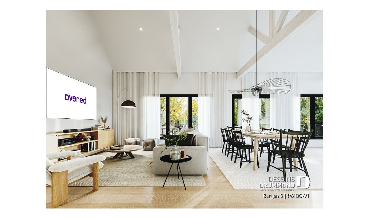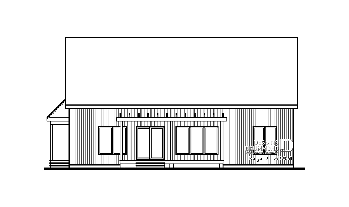 Le plan de maison Bergen 2 (#6100-V1) propose 1260 pi.ca. aménagés sur un seul plancher, excluant le sous-sol qui est non-fini. Cette maison de style Scandinave est une version légèrement retravaillée de son modèle de base, Bergen (#6100).