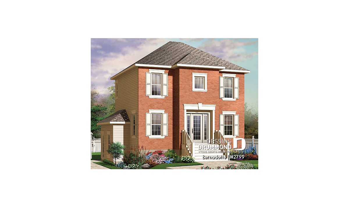 Vue avant - MODÈLE DE BASE - Plan de maison à étage 3 chambres, sous-sol aménageable, salle à manger formelle - Bernadotte