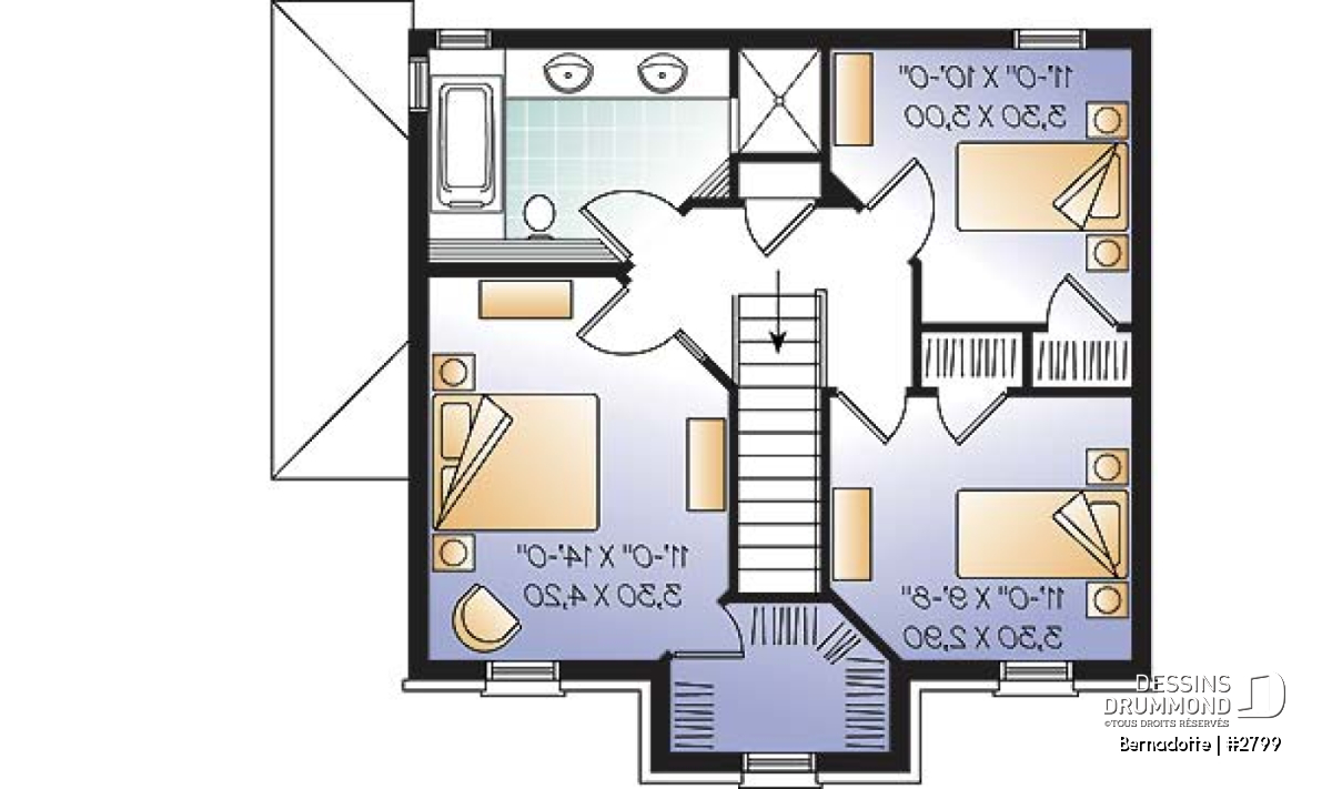 Étage - Plan de maison à étage 3 chambres, sous-sol aménageable, salle à manger formelle - Bernadotte