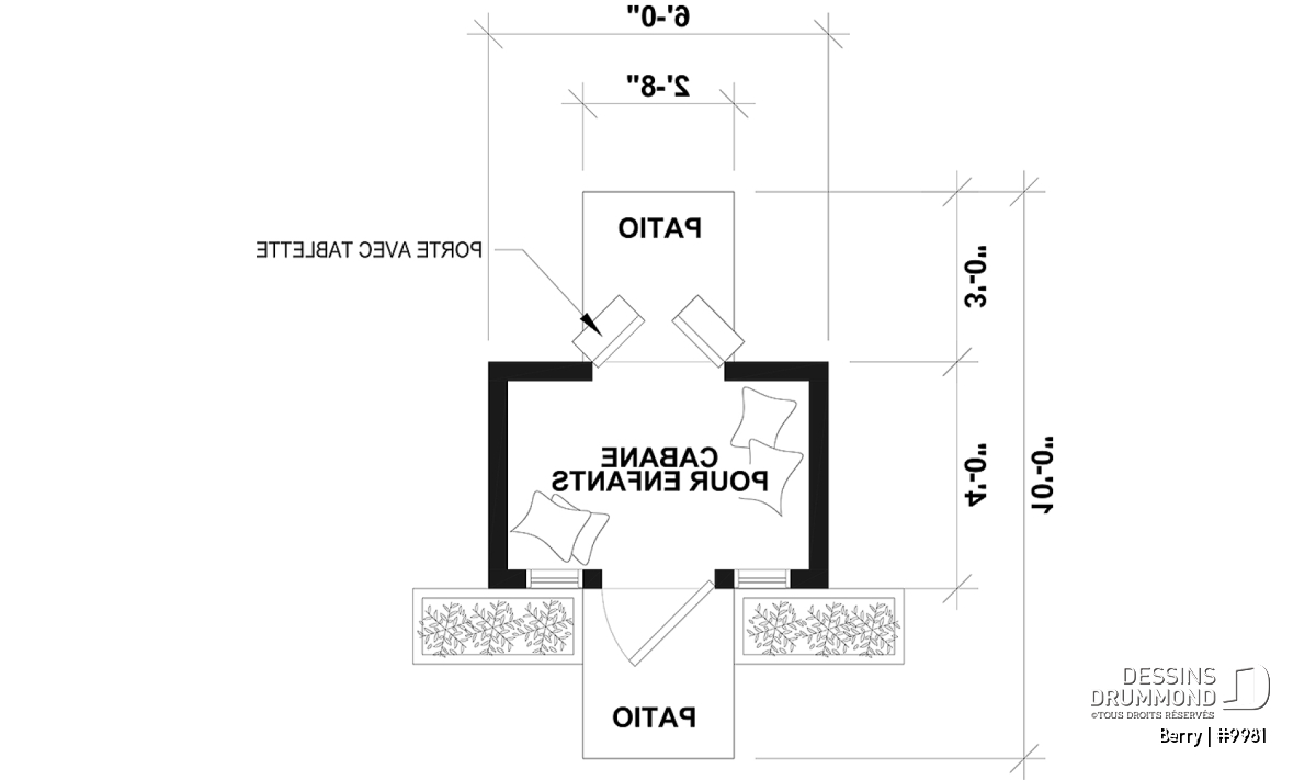 Plan de petite maisonnette pour enfant 6'-0" x 4'-0", excluant les perrons