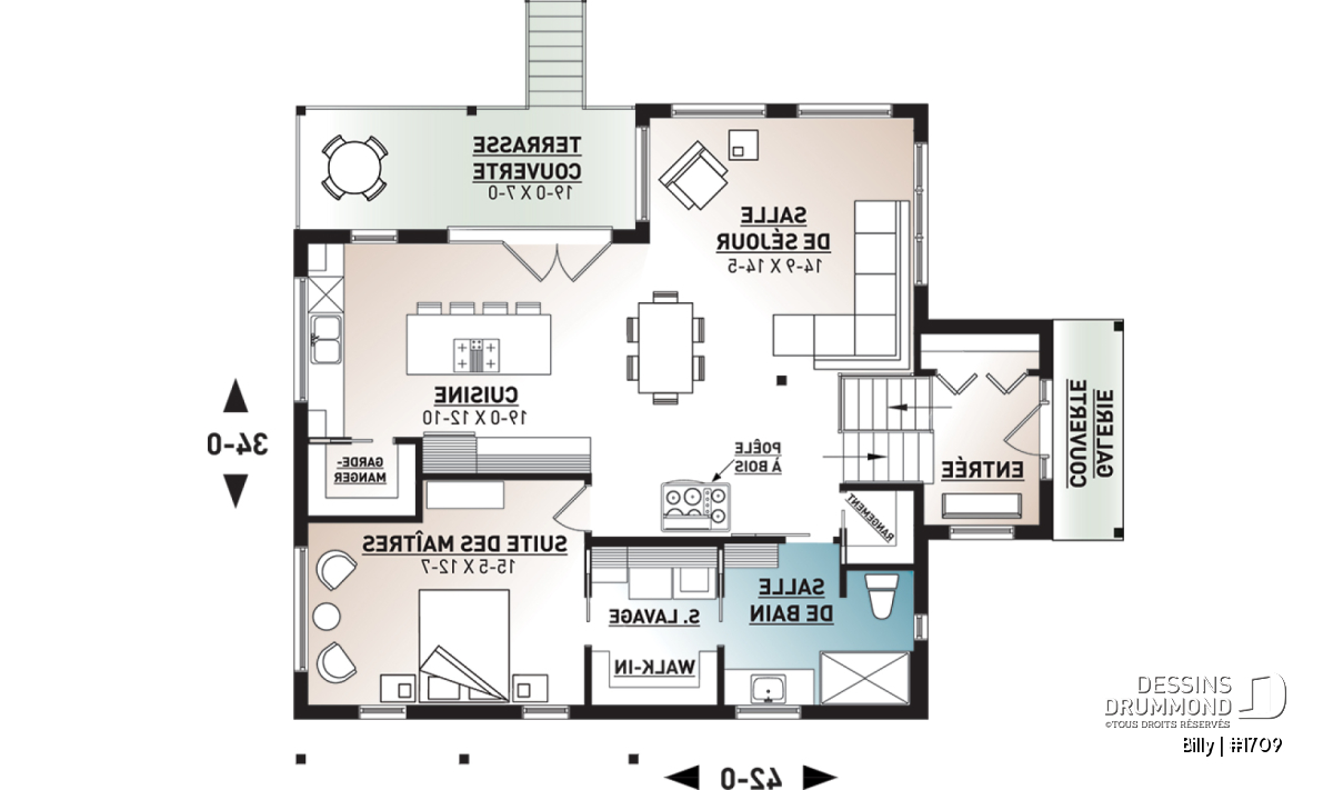 Aire ouverte, Salle de lavage au rez-de-chaussée, Comptoir-lunch, Vue paronamique, Garde-manger, Ilôt, Poêle à bois, Suite des maîtres au rdc, Terrasse abritée, Walk-in ch. maîtres