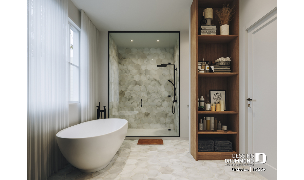 Bain autoportant de grande dimension à double dossier offrant un fin équilibre de courbes élancées et d’angles subtils |Fabriqué au Québec