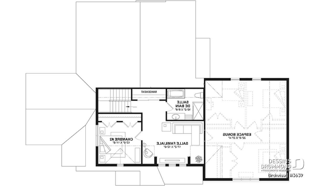 Si vous souhaitez acheter l’option du plan de sous-sol aménageable (le plan de la maison vous sera livré avec un plan de sous-sol non fini), veuillez sélectionner cette option dans le panier d'achat, dans la section "Sélectionner votre fondation". Si vous ne sélectionnez pas cette option, vous recevrez une dalle flottante comme fondation.