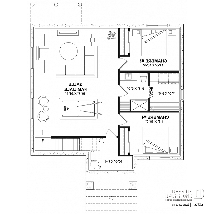 Tous les plans de Dessins Drummond ne peuvent être modifiés que par Dessins Drummond et ses agences reconnues; si vous faites modifier votre plan par une autre entreprise ou personne que Dessins Drummond, assurez-vous que cette entreprise ou personne détient une licence pour la modification de ce plan sinon, vous êtes passible de poursuite judiciaire au même titre que l'entreprise ou la personne avec qui vous avez fait affaires pour la modification ou la reproduction du plan.