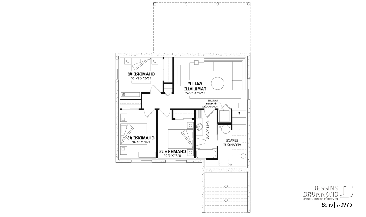Sous-sol aménageable - Modèle de maison moderne, s-sol aménagé optionnel pour un total de 4 chambres, 2 salons et 2.5 salles de bain - Boho