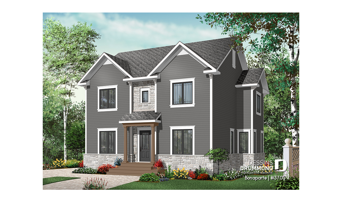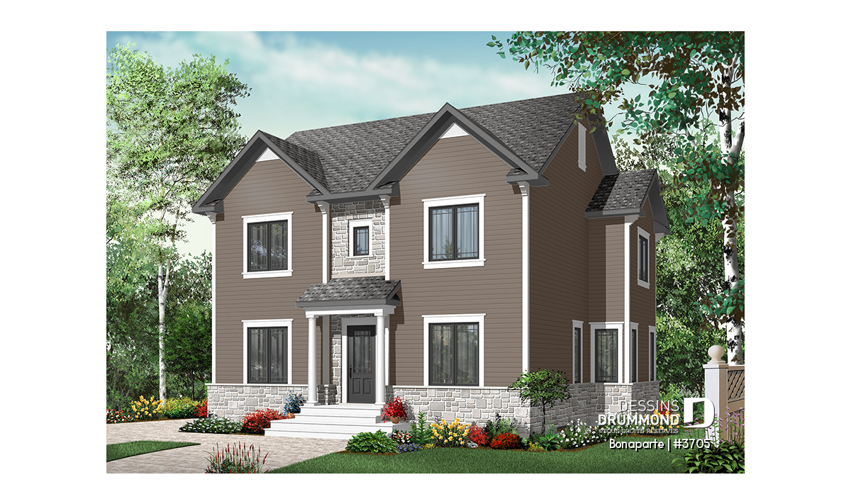 Au rez-de-chaussée, ce cottage propose une salle de séjour de bonnes dimensions et tout à fait adéquate à la famille visée ainsi qu’un secteur cuisine-salle à manger abondamment fenêtré et tout aussi approprié avec la présence d’un îlot-lunch assez imposant à la cuisine et d’un garde-manger plus grand que la moyenne. Ce même plancher suggère en plus, un superbe espace buanderie avec grand comptoir et cuve, le tout indépendant du coin toilette. Toujours au rez-de-chaussée, on est agréablement surpris par la présence d’un espace bureau attenant à un escalier dont l’organisation facilitera en tout temps l’ajout d’un garage sur le côté droit et, pourquoi pas, d’un vase espace boni au-dessus.