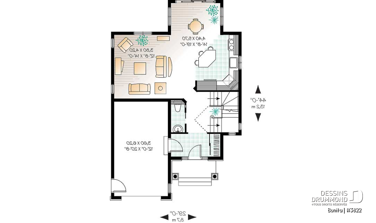 Cette maison, pensée pour un terrain plutôt étroit avec seulement 29 pieds linéaires de façade, offre une allure extérieure remarquable. L’entrée principale, suffisamment large, se veut des plus accueillantes alors que la combinaison de deux fenêtres longilignes latérales procure un éclairage plus qu’appréciable au puits d’escalier. Sans oublier ce faux balcon qui habille très bien les fenêtres de la chambre des maîtres située juste au-dessus du garage. Entrons donc, histoire de satisfaire notre curiosité.