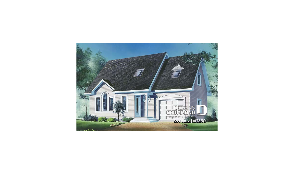 Vue avant - MODÈLE DE BASE - Cottage traditionnel, garage, 3 chambres, cuisine avec îlot, espace ouvert - Bouleaux