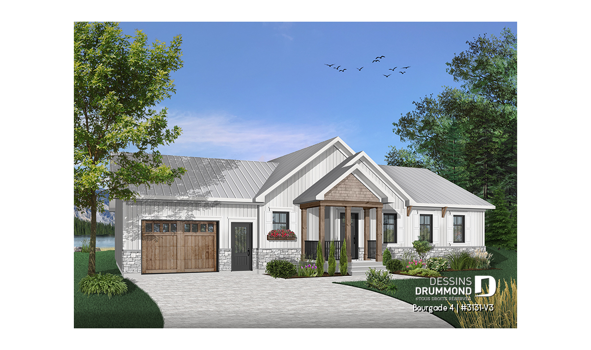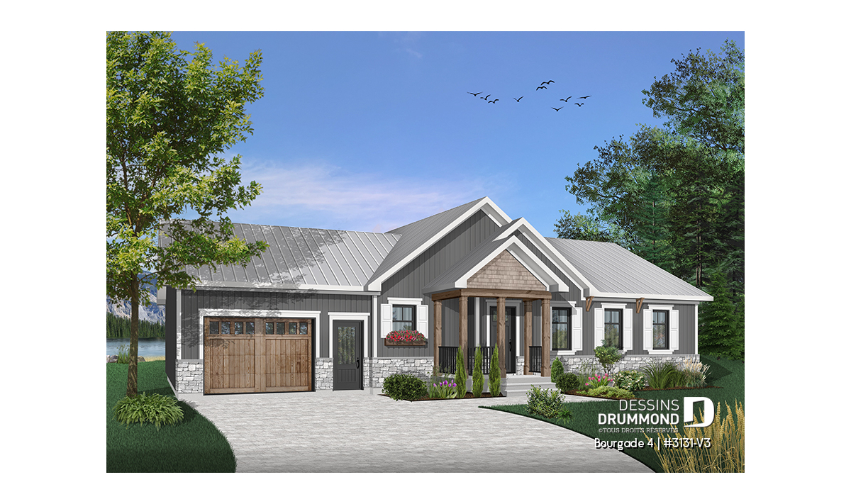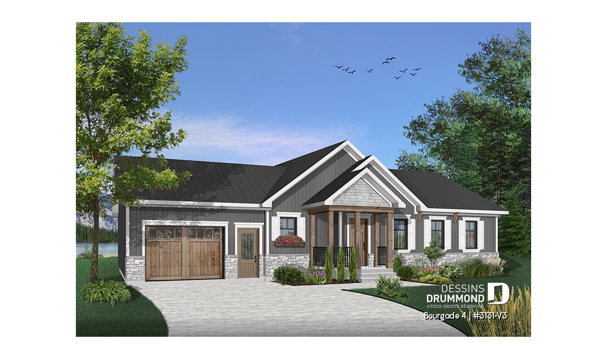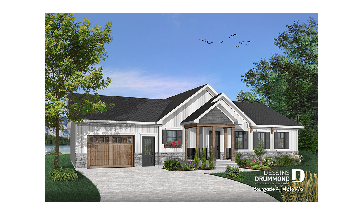 Maison de style moderne rustique offrant beaucoup de commodités et un garage.