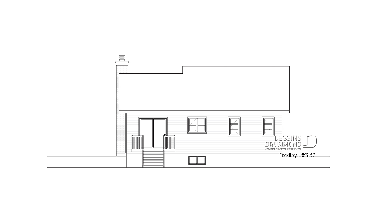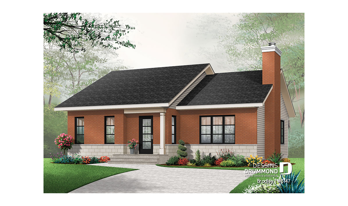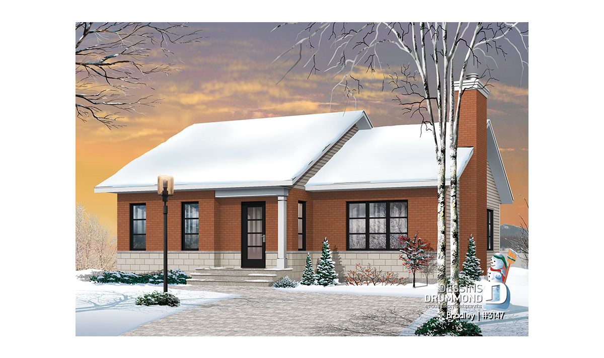Afin de rencontrer les attentes d’une clientèle hésitante à se construire une maison de véritable style contemporain, Dessins Drummond suggère ici un plan de plain-pied d’approche contemporaine classique.