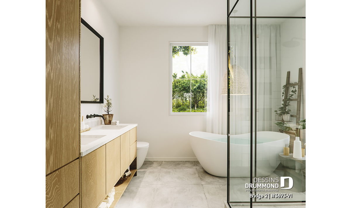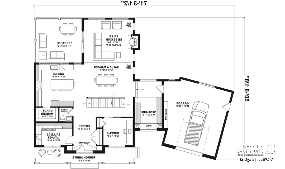Le sous-sol est en rez-de-jardin et non fini. Vous pourrez l’aménager selon vos besoins immédiats ou futurs. Le garage est simple et de grand format et pourrait aisément être doublé au besoin, via notre service de modifications de plans en ligne ou dans l’un de nos 26 bureaux au Québec.
