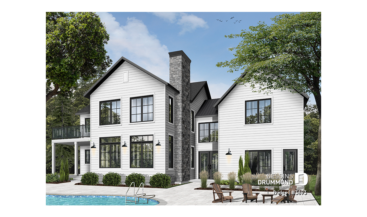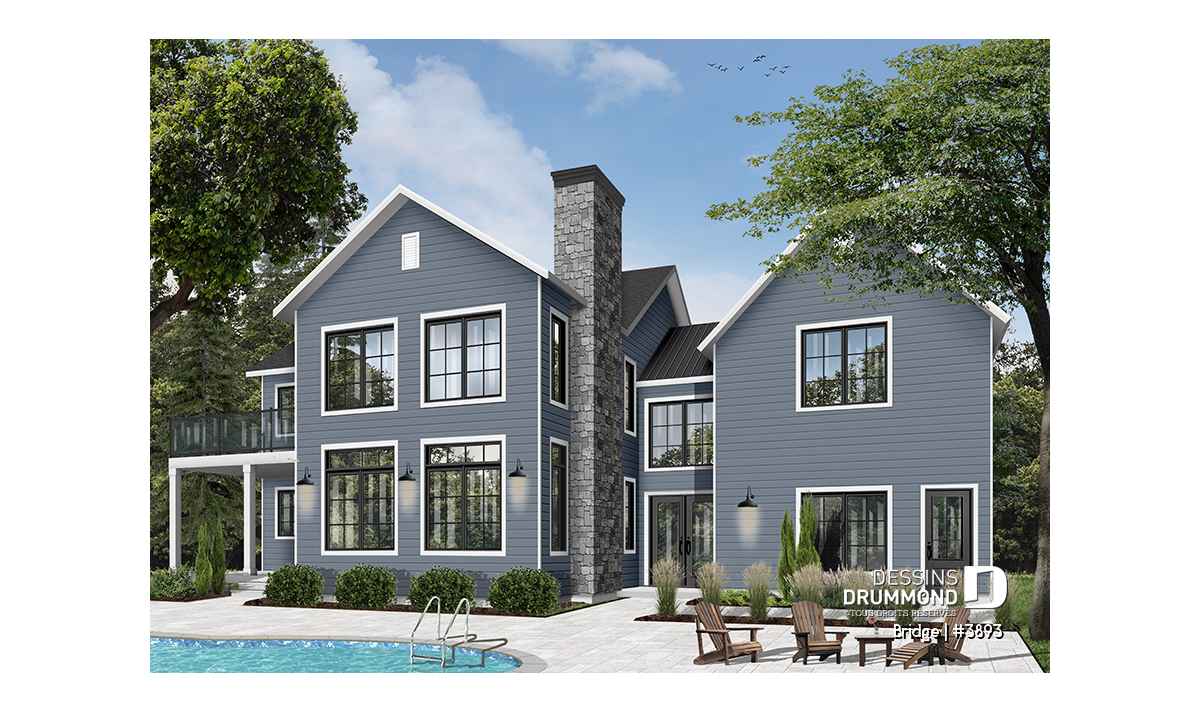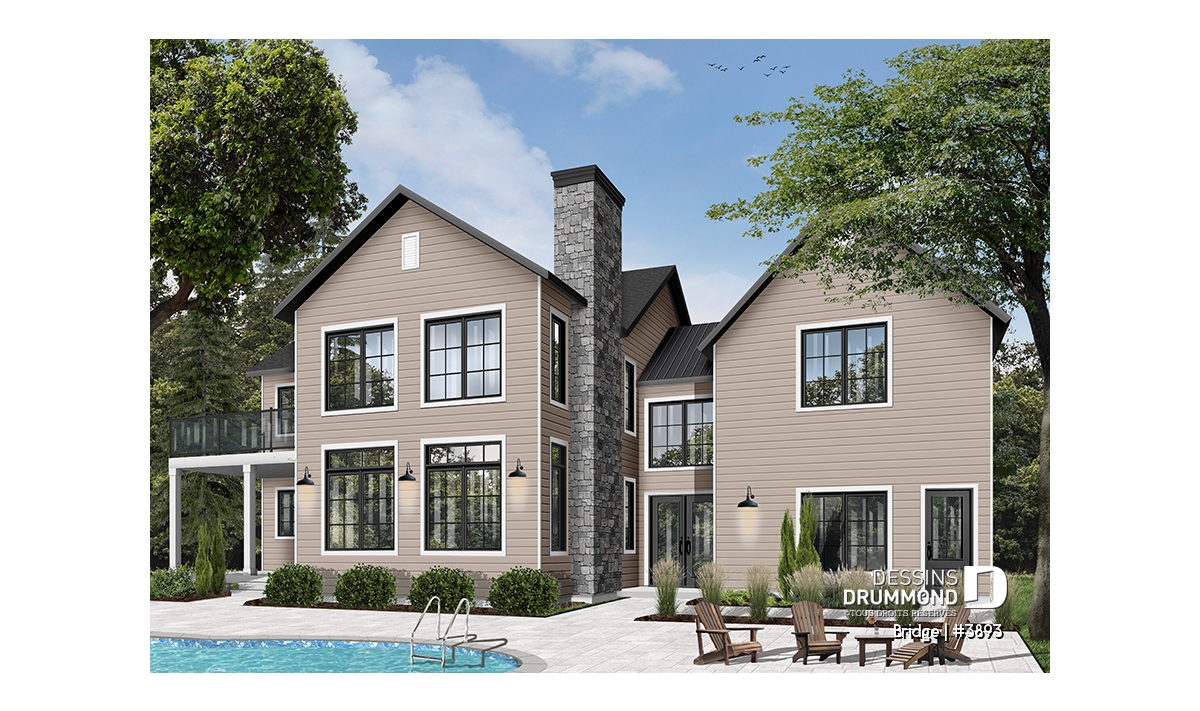 Aire ouverte, Balcon à l'étage, Salle de lavage au rez-de-chaussée, Bureau / Salle étude, Comptoir-lunch, Vue paronamique, Foyer, Garde-manger, Ilôt, Meuble(s) encastré(s), Plafond à plus de 8', Plafond cathédrale, Salle de bain communicante, Salle de jeux, Walk-in ch. maîtres, Vestiaire, Terrasse abritée, Suite des maîtres à l'étage, Bar à café, Garage spacieux
