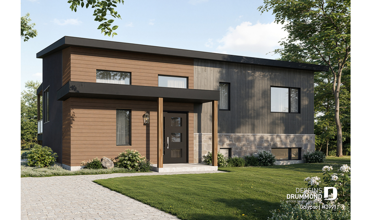 Le plan de chalet style moderne contemporain suivant, Calypso (3991) sera combler tout les amoureux de la nature.