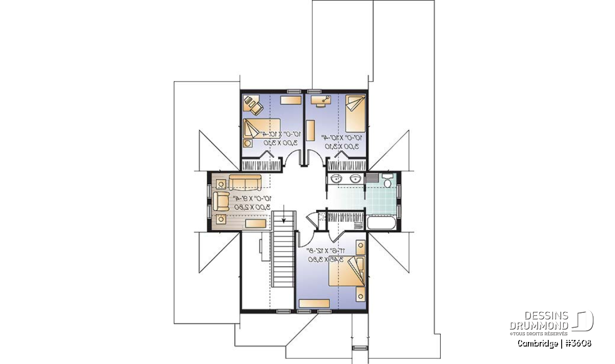 Trois chambres aménagées à l'étage en plus d'un coin lecture en mezzanine juste au haut de l'escalier.