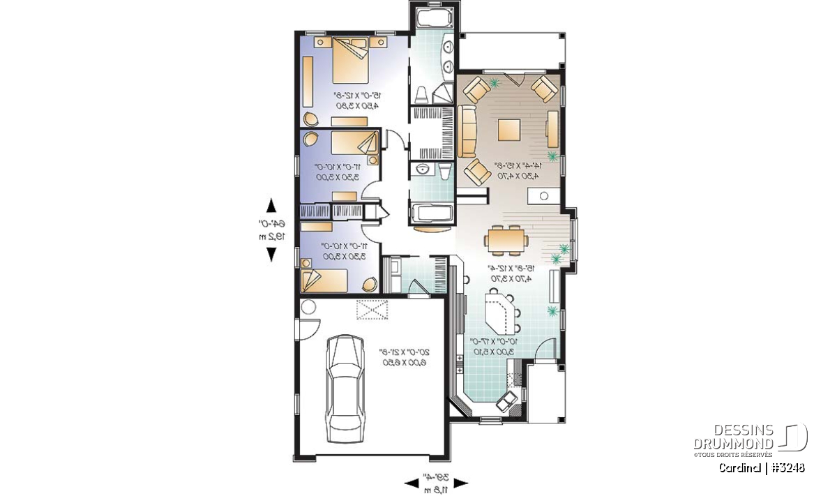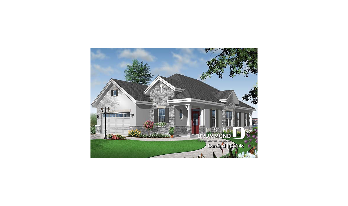 Superbe plan de maison craftsman 3 chambres avec garage.
