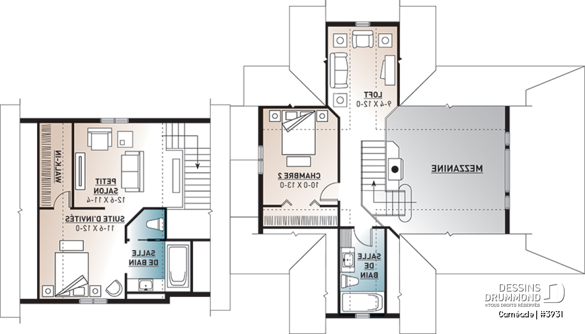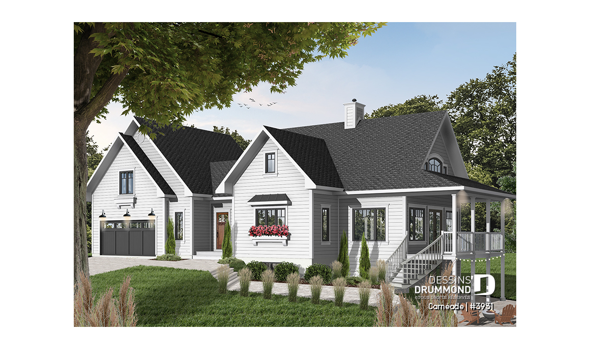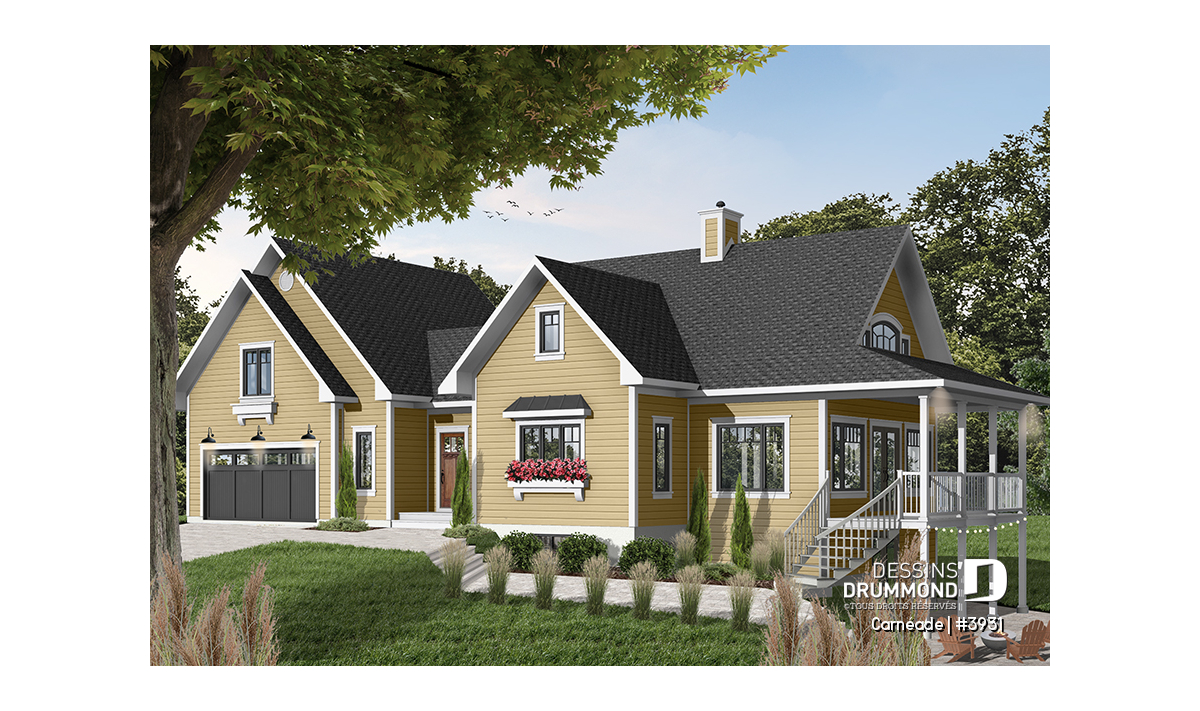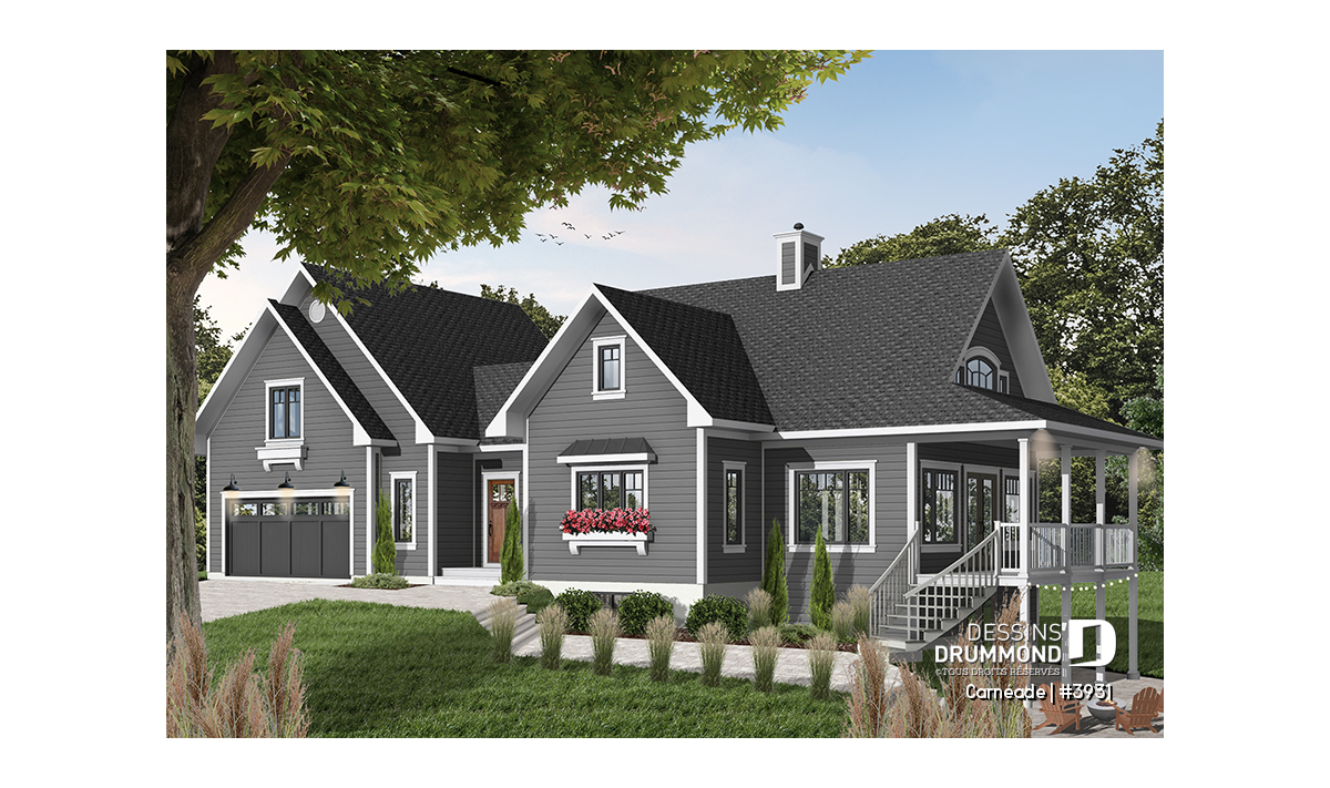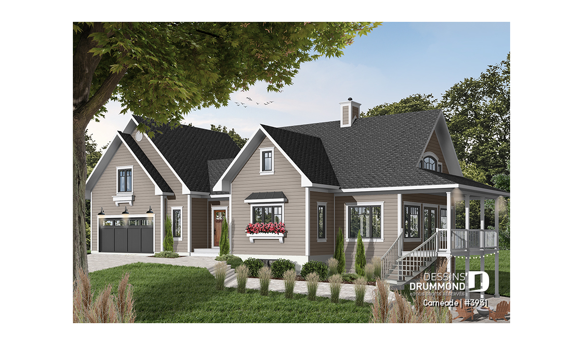 Une fois de plus, Dessins Drummond se veut à l’écoute de sa clientèle avec cette variante intéressante d’un « chalet » fort populaire en y ajoutant un garage double et encore plus d’espace logeable. À vous de constater.