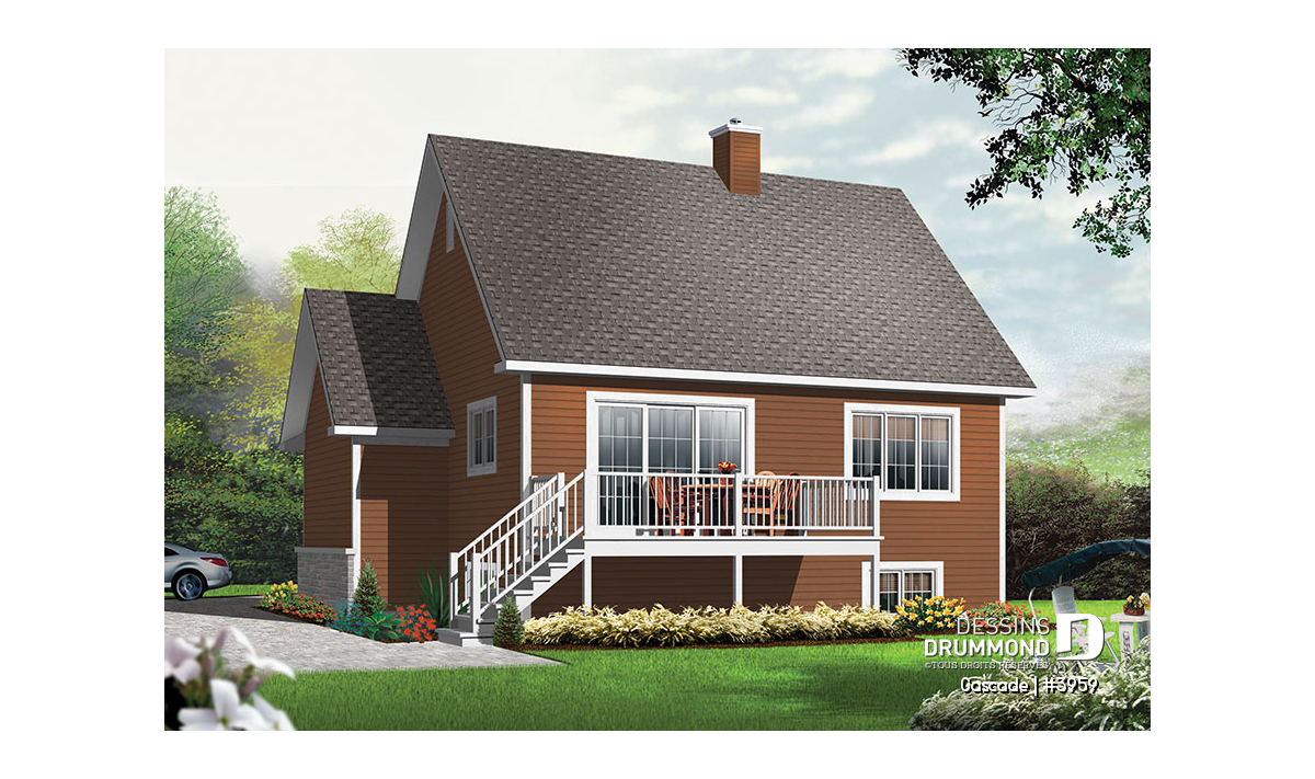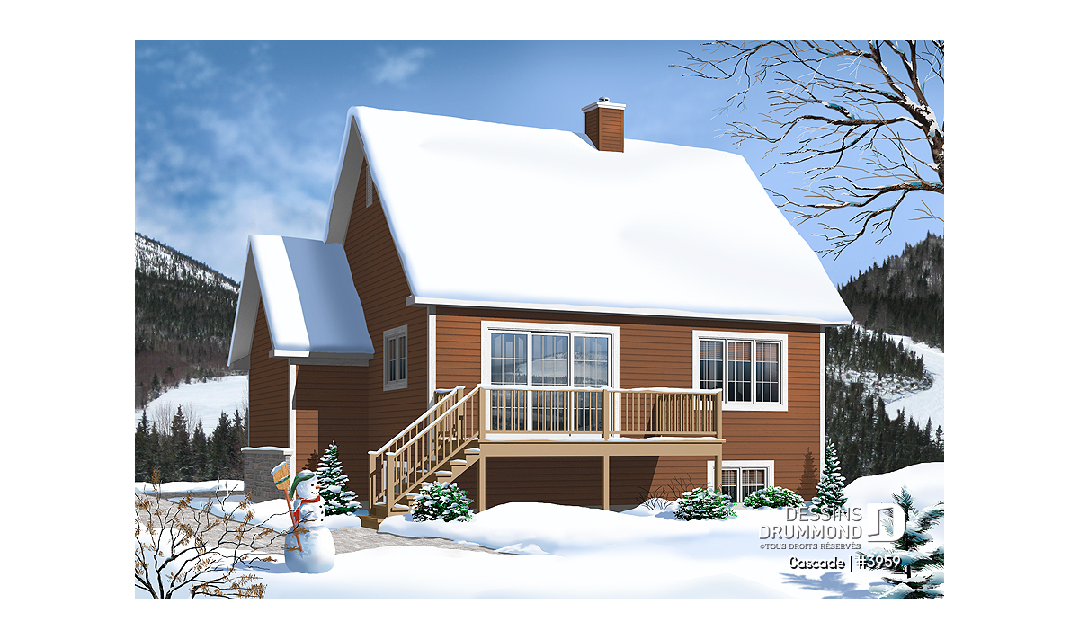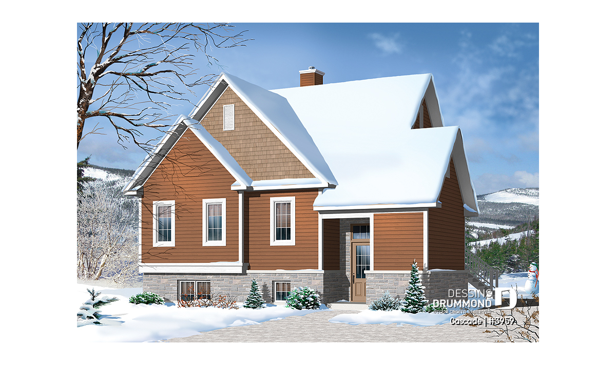 Je crois qu’on peut véritablement parler d’une approche abordable pour un chalet de ski proposant 1 à 4 chambres, un secteur activités abondamment fenêtré avec foyer et un coup d’œil extérieur tout à fait dans le ton de ces chalets d’hiver. Le truc pour l’obtention d’un tel prix, l’aménagement d’un sous-sol en partie hors terre et pour l’obtention de fenêtres adéquates et conformes. Entrons donc sans plus tarder !