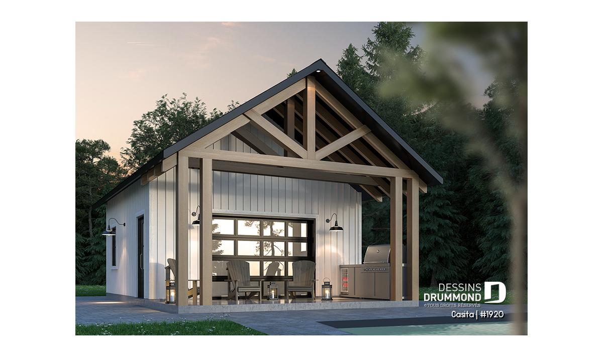 Enfin, la vaste terrasse abritée offre tout le potentiel nécessaire pour accueillir une cuisine extérieure, une salle à manger ou un espace détente, faisant du plan CASITA (#1920) un cabana aussi fonctionnel que chaleureux, pensé pour profiter pleinement de la belle saison.