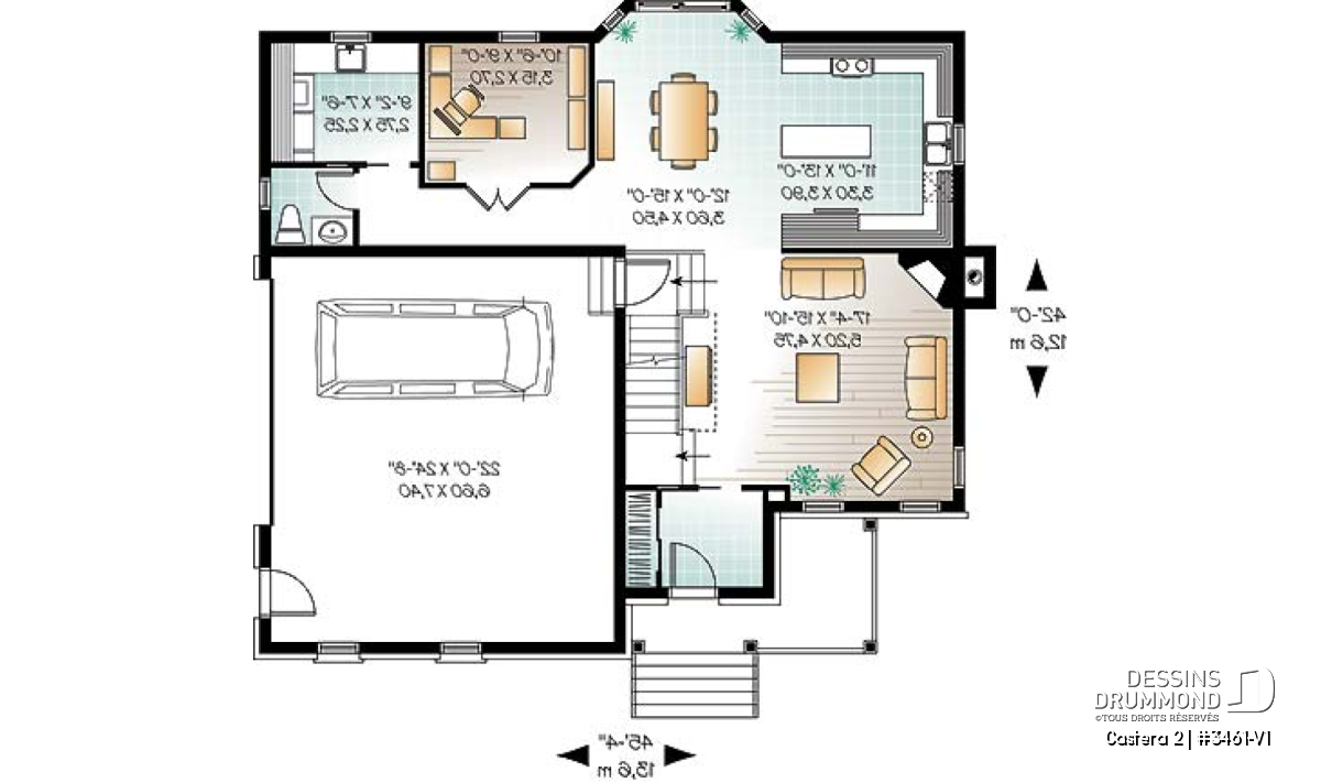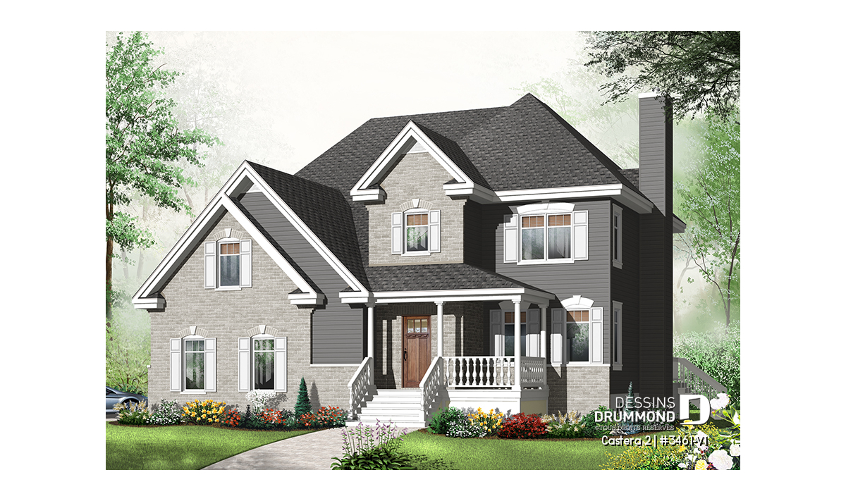 Le garage double, doté de portes positionnées sur le côté droit, s’avère particulièrement pratique pour les terrains en coin, facilitant les manœuvres et maximisant l’esthétique de la façade.