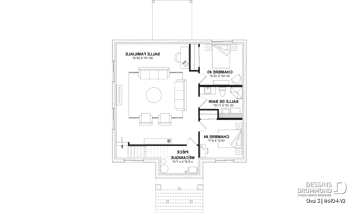 *Si vous souhaitez acheter le plan du sous-sol aménagé, tel que présenté sur la page de ce plan, veuillez sélectionner cette option dans le panier d'achat, dans la section "Sélectionner votre fondation". Si vous ne sélectionnez pas cette option, vous recevrez le sous-sol non fini, sans frais additionnel.