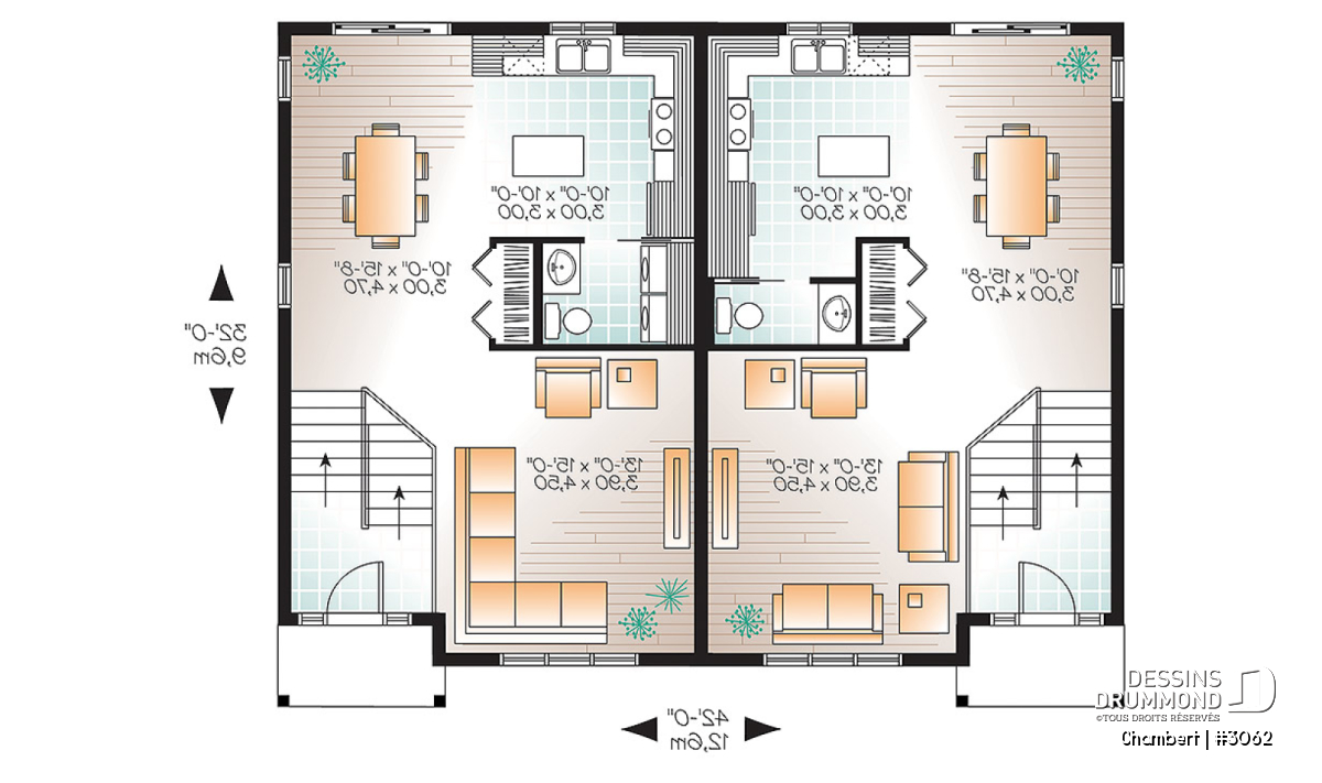 Idéal pour terrain étroit (42pi. de largeur totale).
