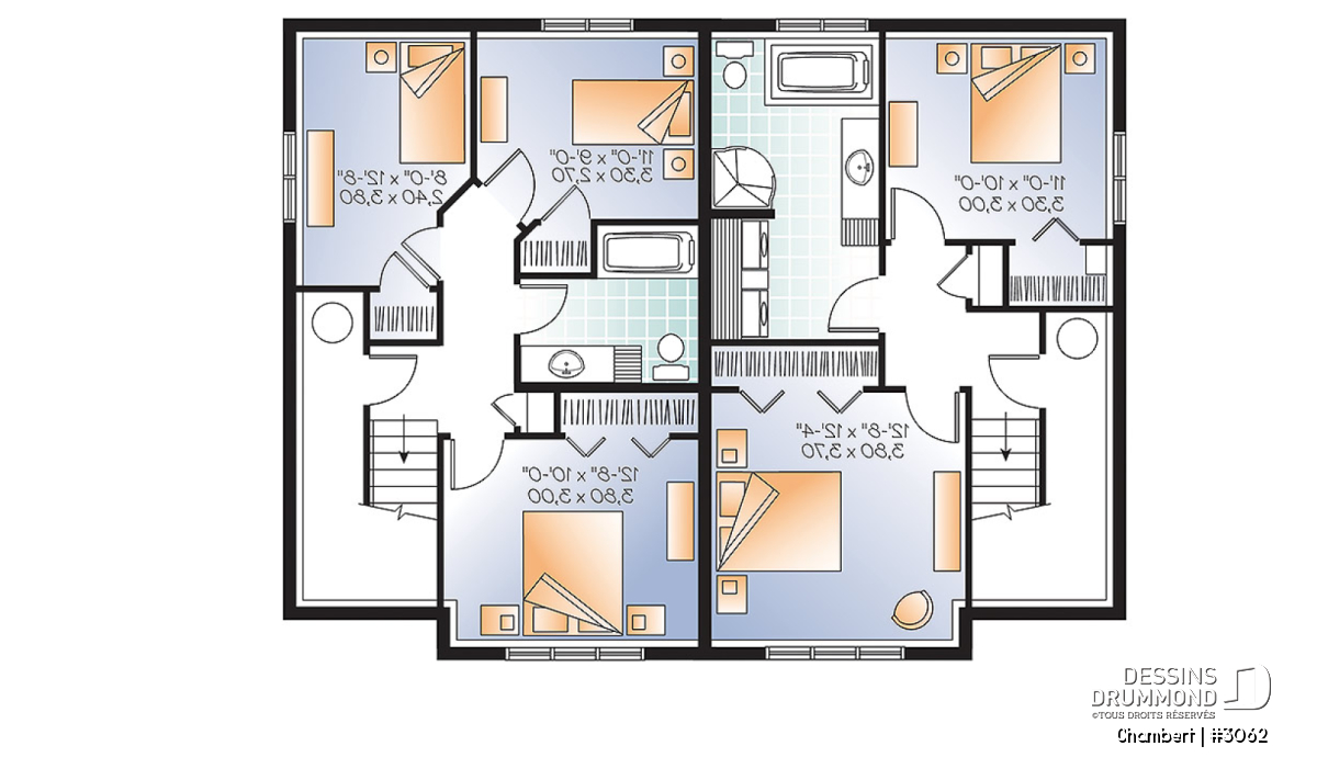 Option de 2 chambres et buanderie au sous-sol pour l'unité de gauche.