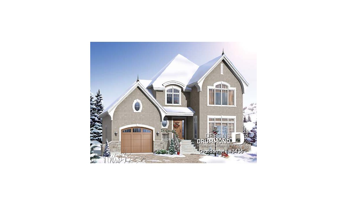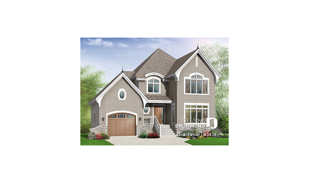 Des jeux de volumes et de toitures particulièrement réussis, un bien bel agencement de matériaux avec la rencontre de la brique-pierre et de l’imitation bardeau de cèdre et une bonne répartition des ouvertures confèrent à ce modèle une élégance sans équivoque. Entrons donc pour constater maintenant la luminosité et les particularités que l’on titre ici.