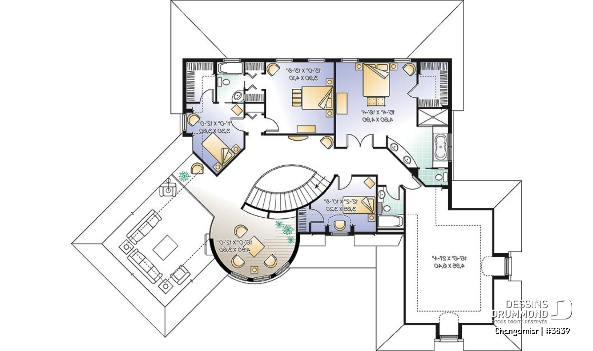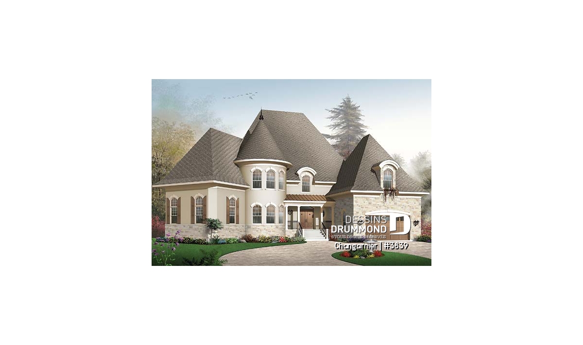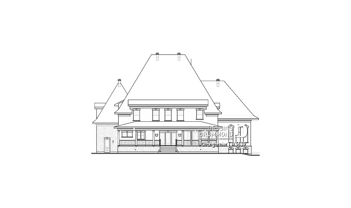Tout à fait imposant, avec ses 3649 pieds carrés habitables, ce cottage l’est aussi par le biais de ses volumes amplifiés, par la présence d’un plafond à 10 pieds au rez-de-chaussée et un autre de 9 pieds à l’étage. Une tour, bien localisée dans la façade principale, côtoie une bien belle galerie à la fois couverte et fort invitante.