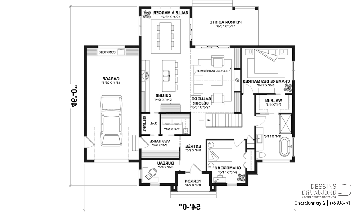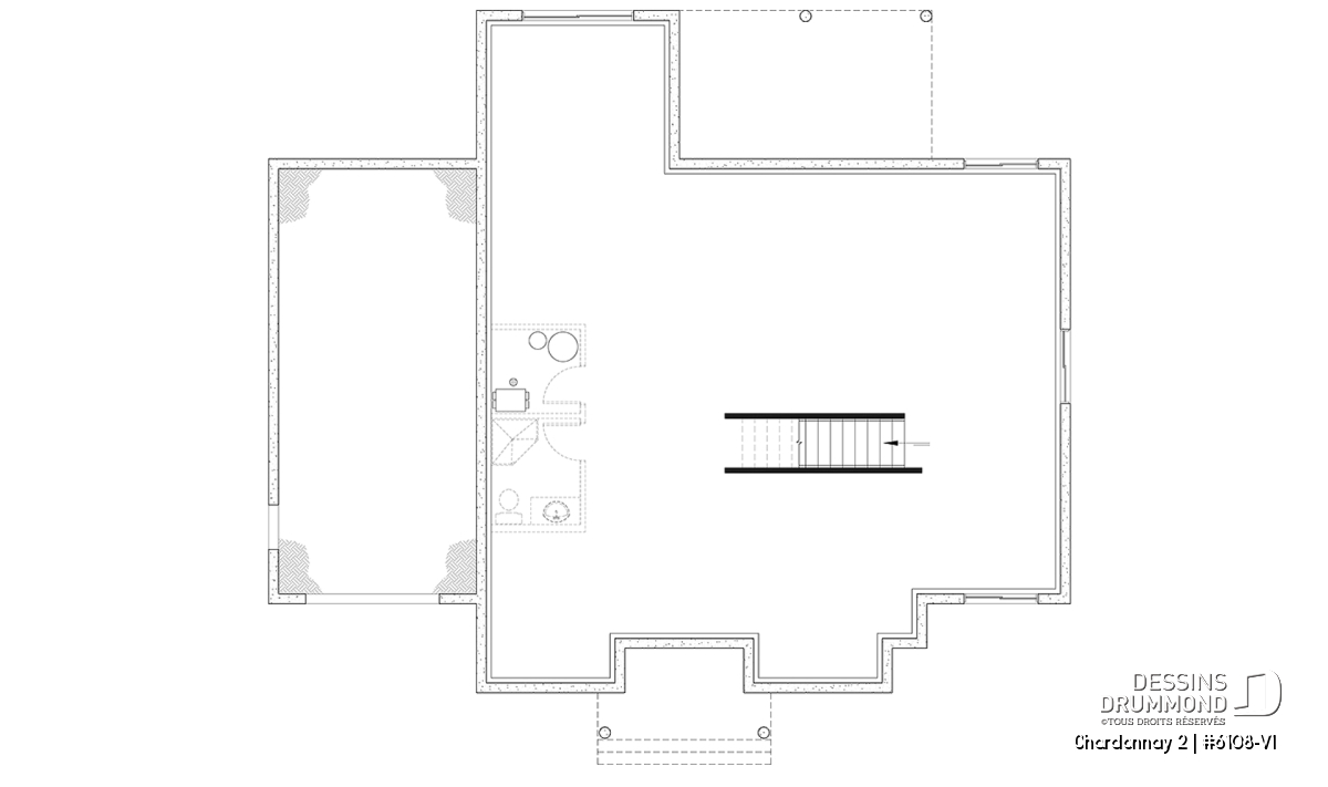 Cette magnifique maison propose aussi un garage avec coin atelier, ainsi que d’un sous-sol à aménager selon vos besoins familiaux, mais noter que d'autres types de fondation sont également disponibles. Ce plan est aussi disponible sans garage, voir le plan Chardonnay (# 6108) qui propose un garage en plus de quelques modifications intérieures.