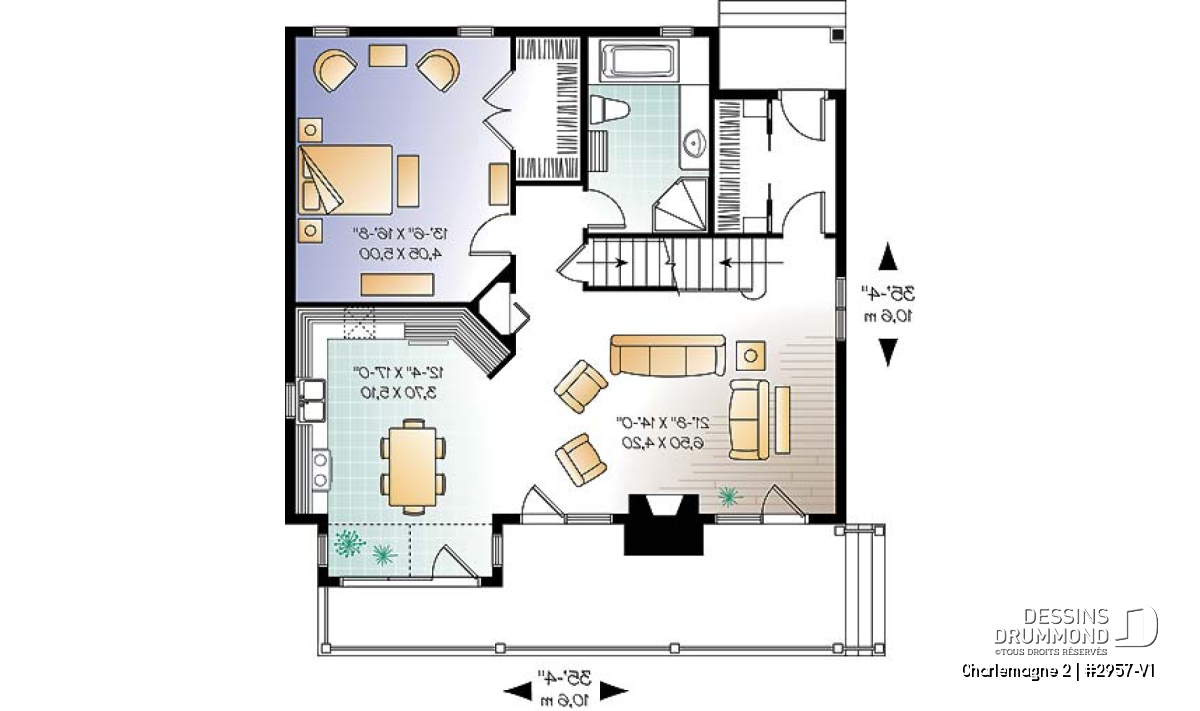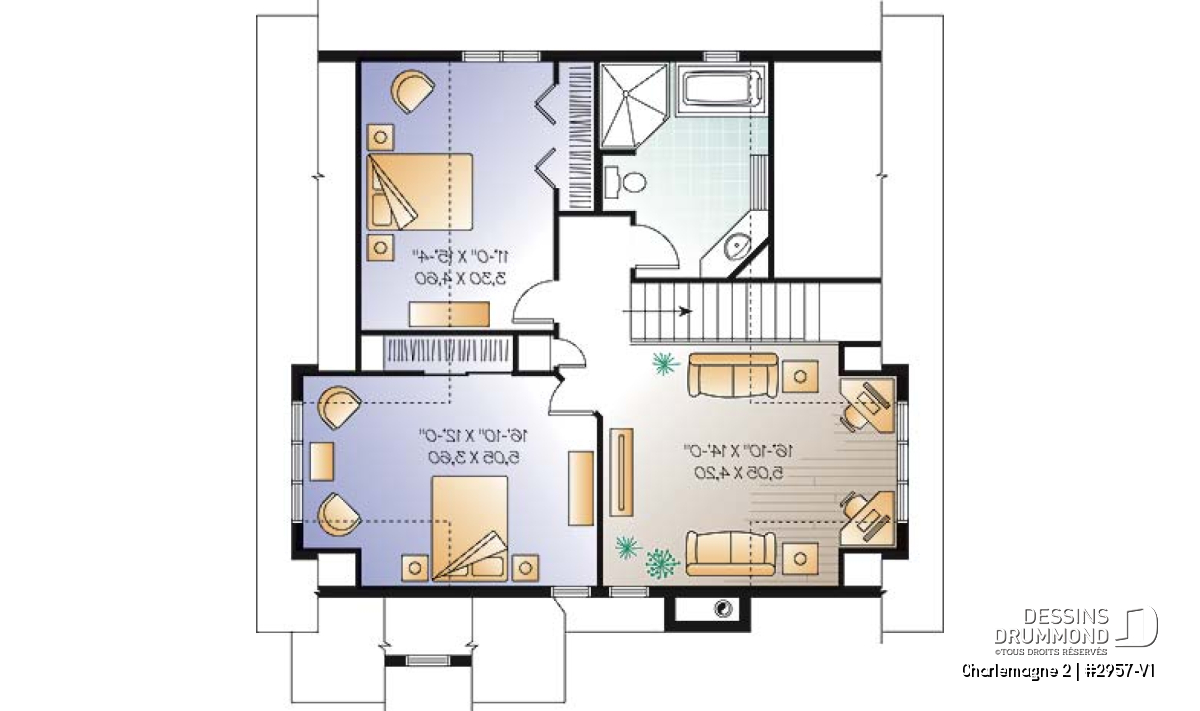 D’abord très convoité dans le marché nord-américain, le plan 2957 dont origine ce modèle version, justifie l’intérêt qu’on lui porte par un extérieur chaleureux et abondamment fenêtré ainsi que par son intérieur à la fois ouvert, confortable et proposant une chambre des maîtres au rez-de-chaussée.