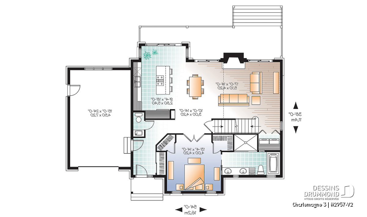 Un espace boni lumineux situé au-dessus du garage permet l’aménagement d’une quatrième chambre, d’un bureau ou d’une pièce polyvalente. Le plan CHARLEMAGNE 3 (#2957-V2) offre ainsi un équilibre réussi entre charme rustique, fonctionnalité et adaptabilité.