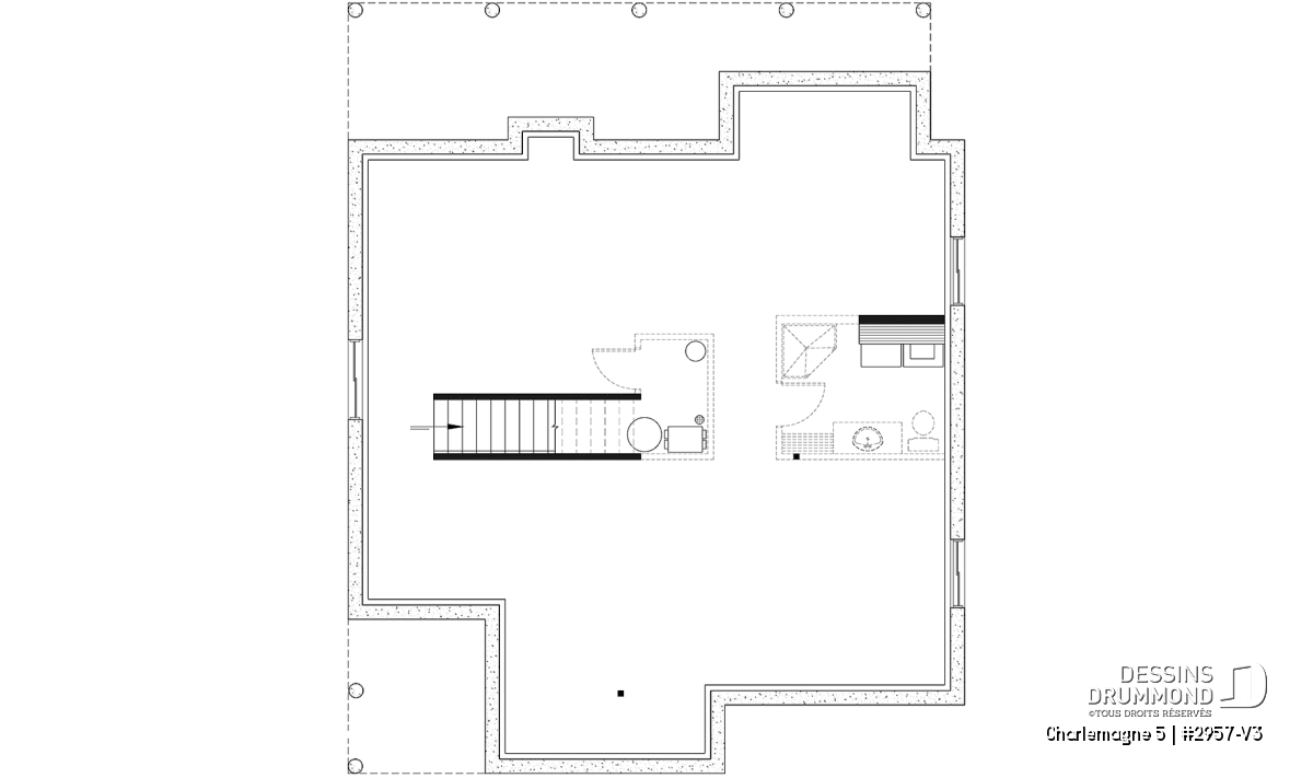 Sous-sol - Plan de maison chalet nordique – 3 chambres, mezzanine et foyer au cœur du salon - Charlemagne 5