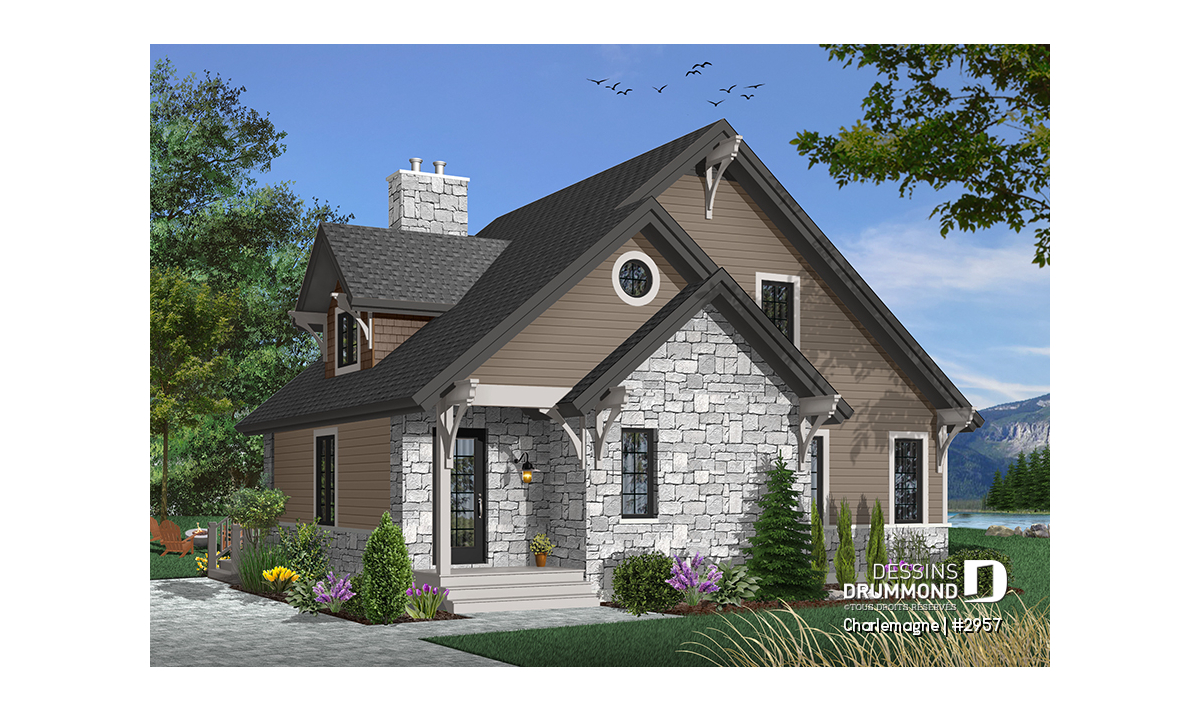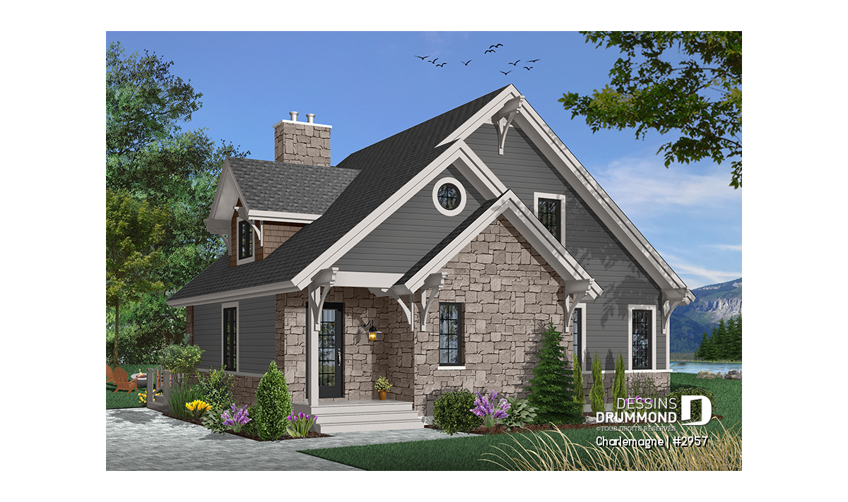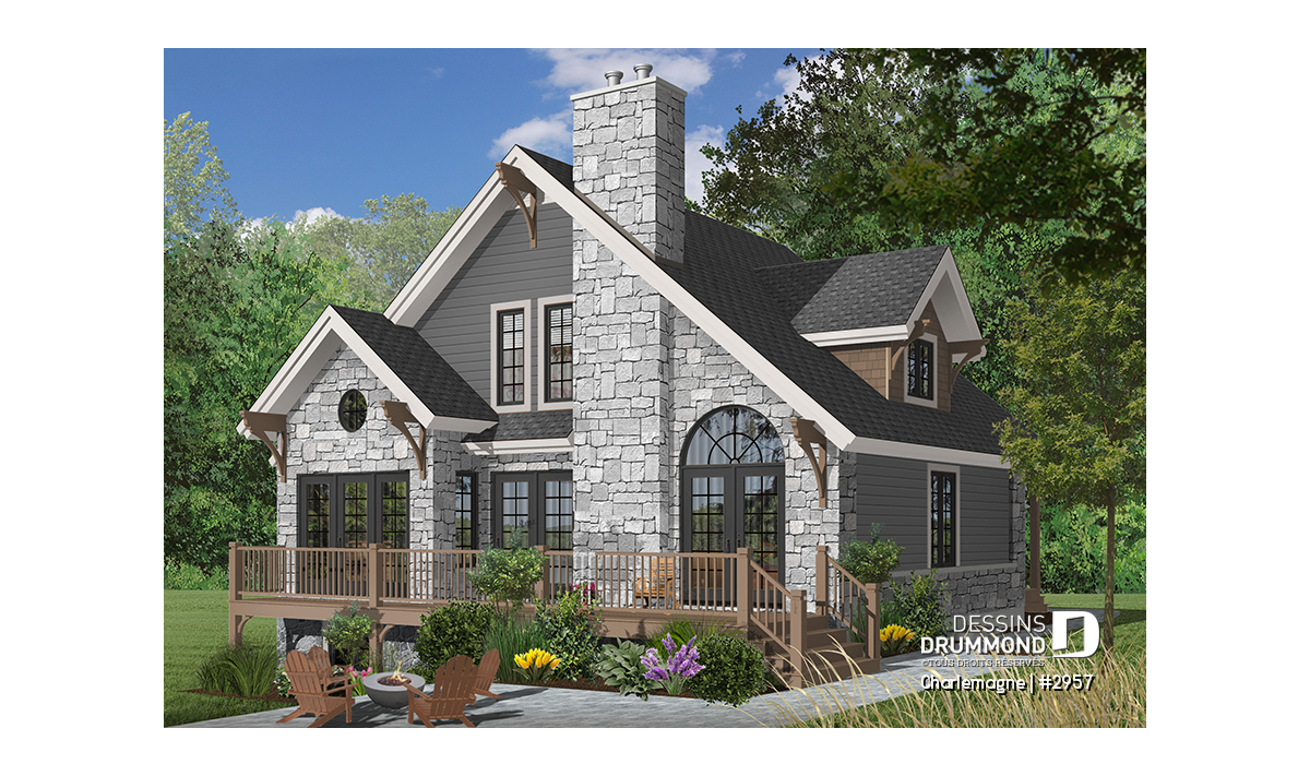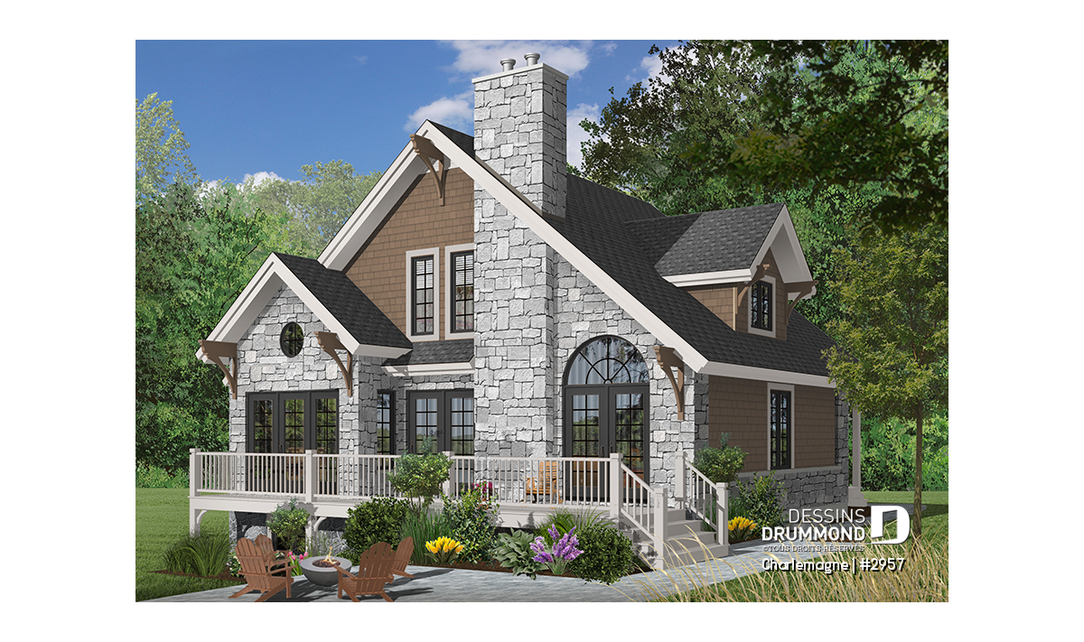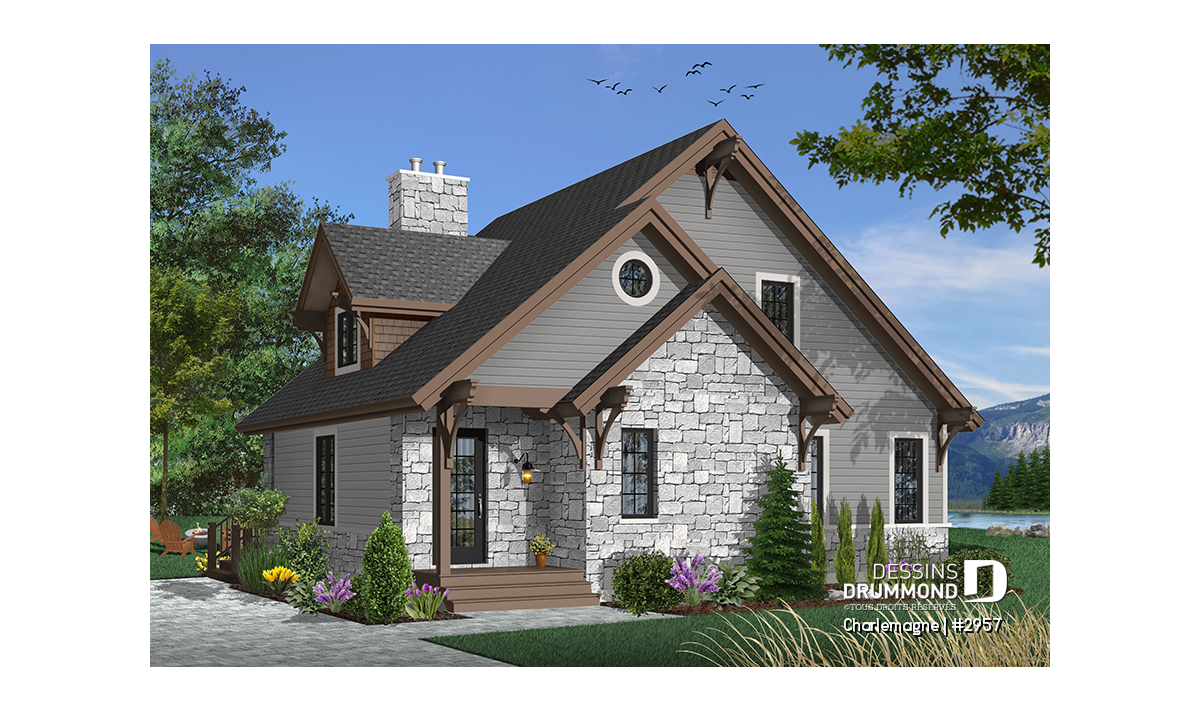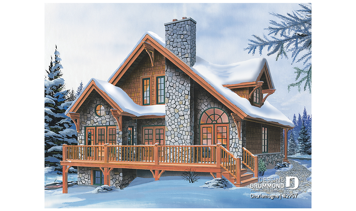 Plan de maison de style chalet de ski offrant une vue spectaculaire ou un accès près de l’eau.