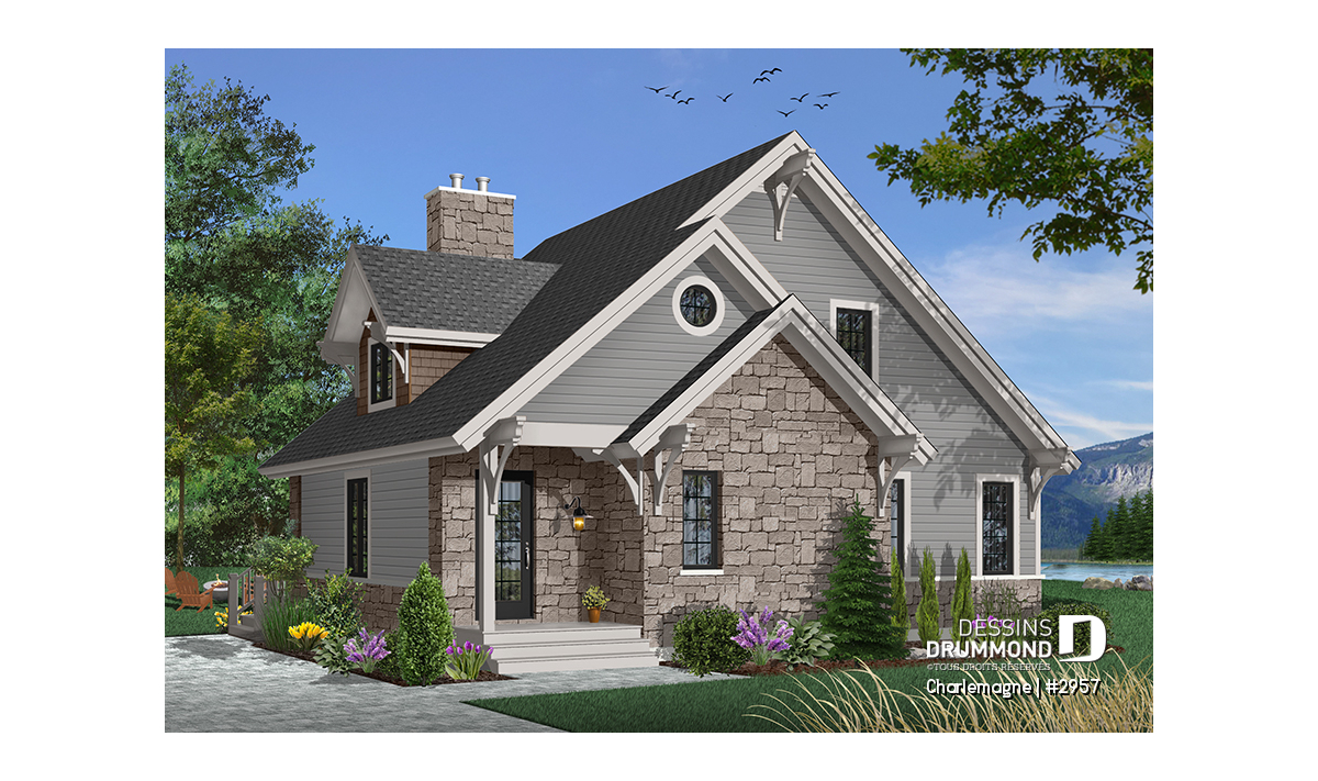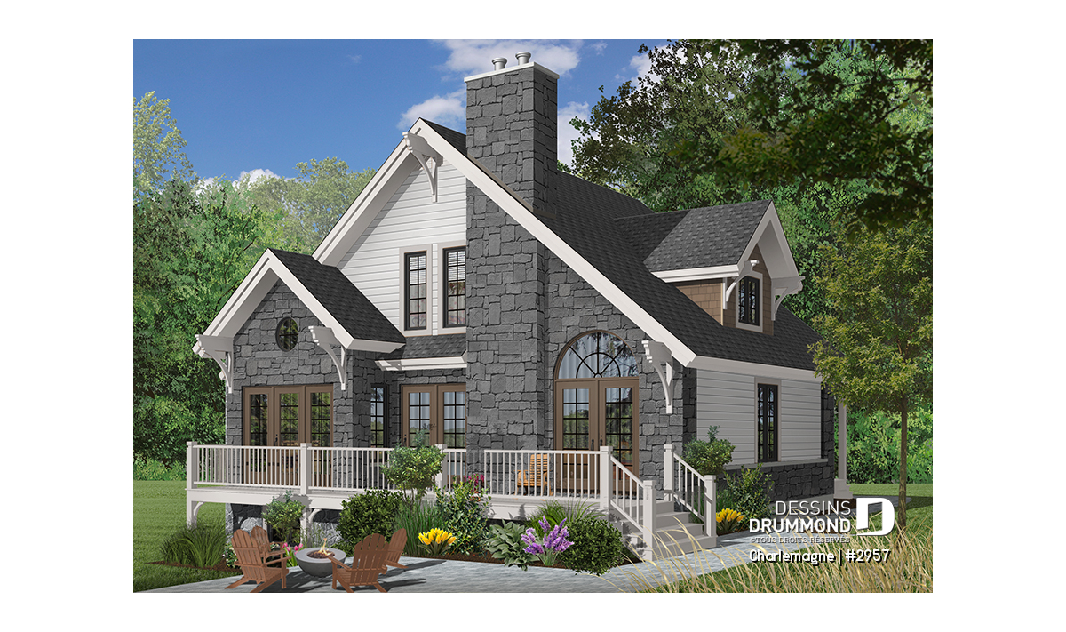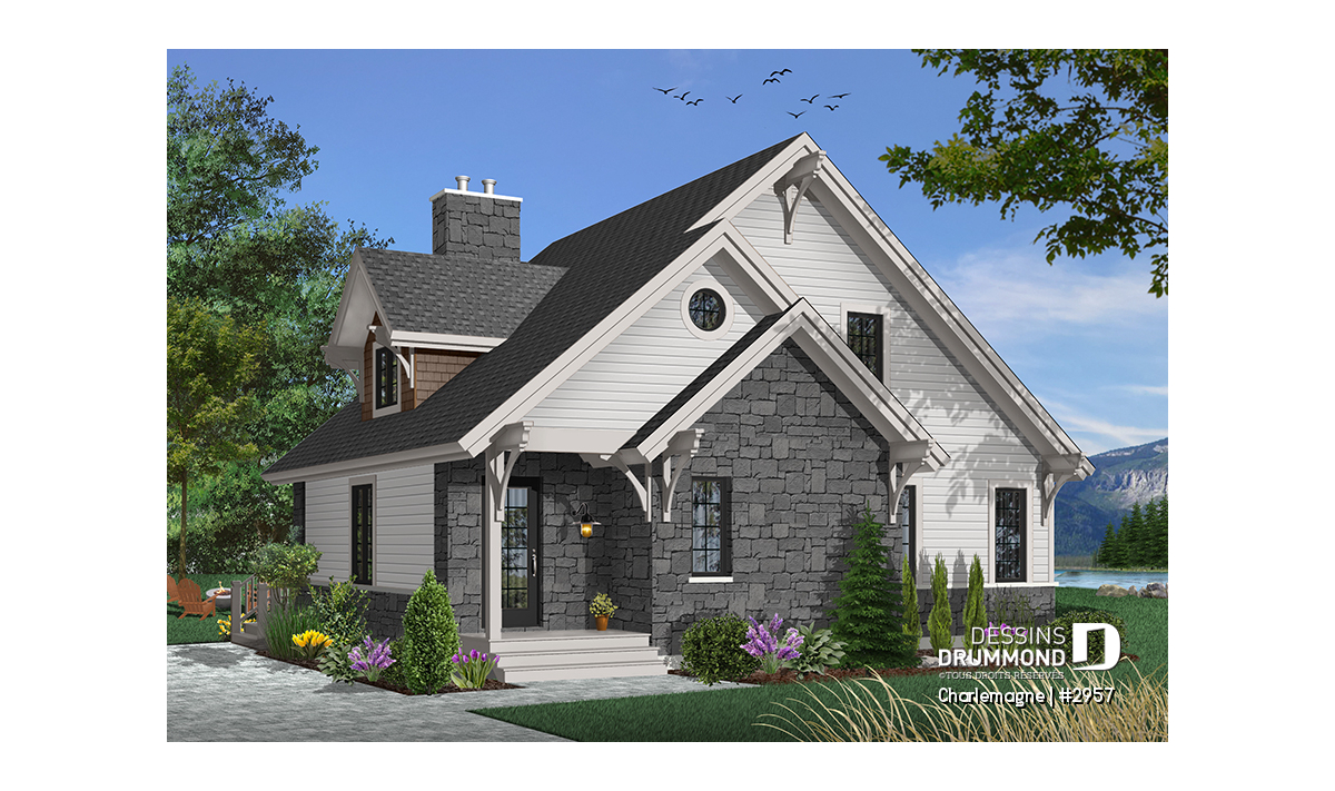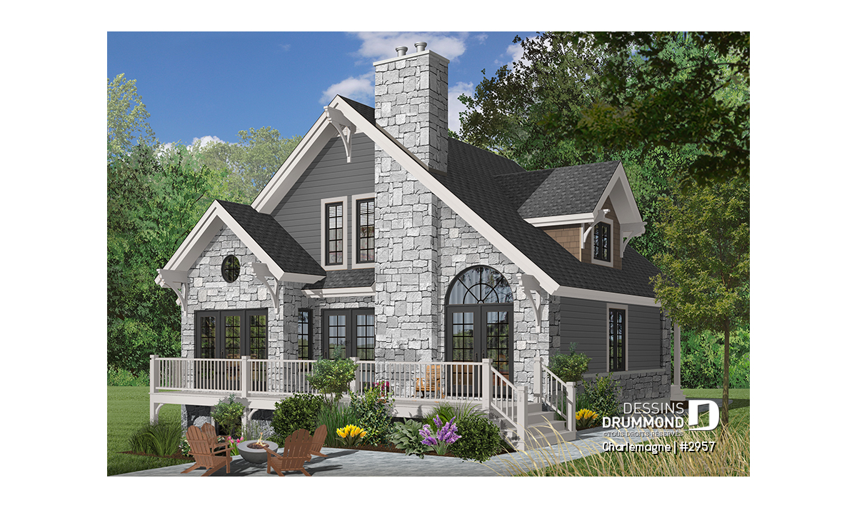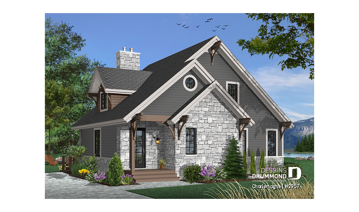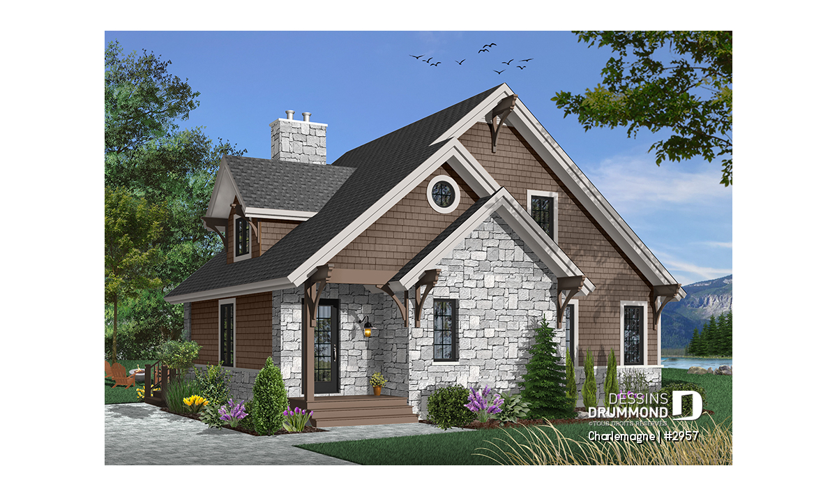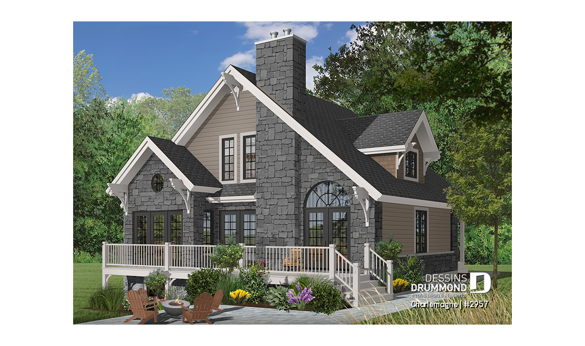 Plan de maison de style chalet de ski offrant une vue spectaculaire ou un accès près de l’eau.