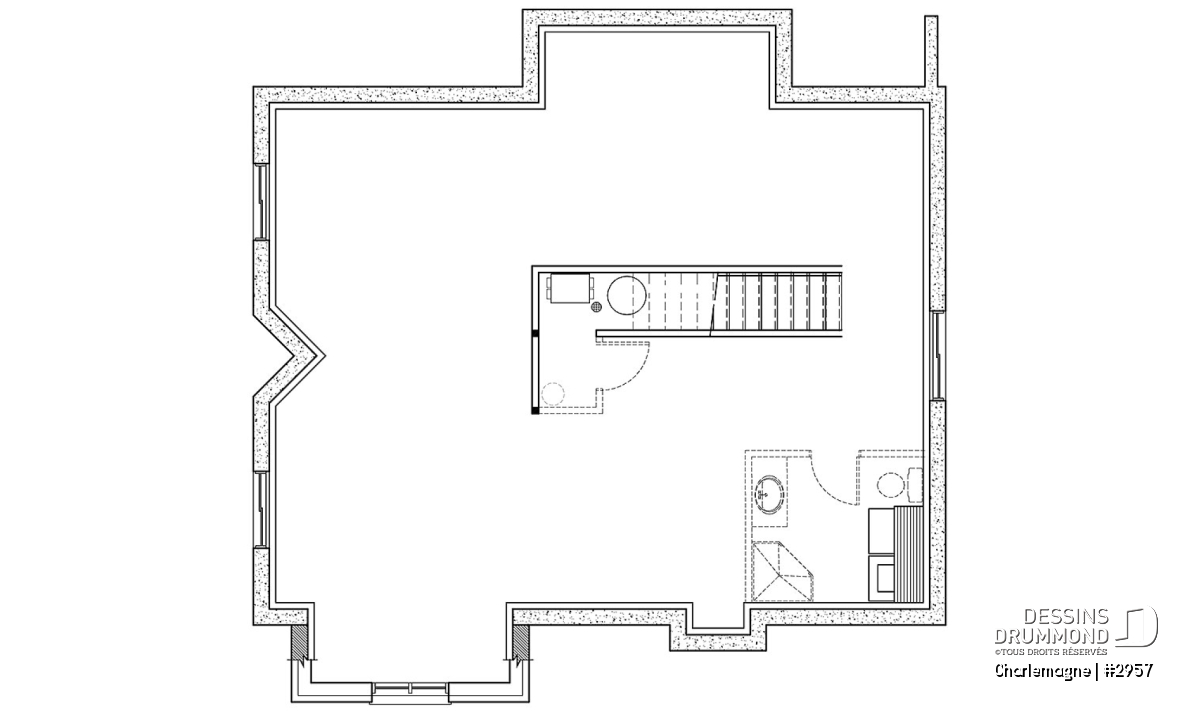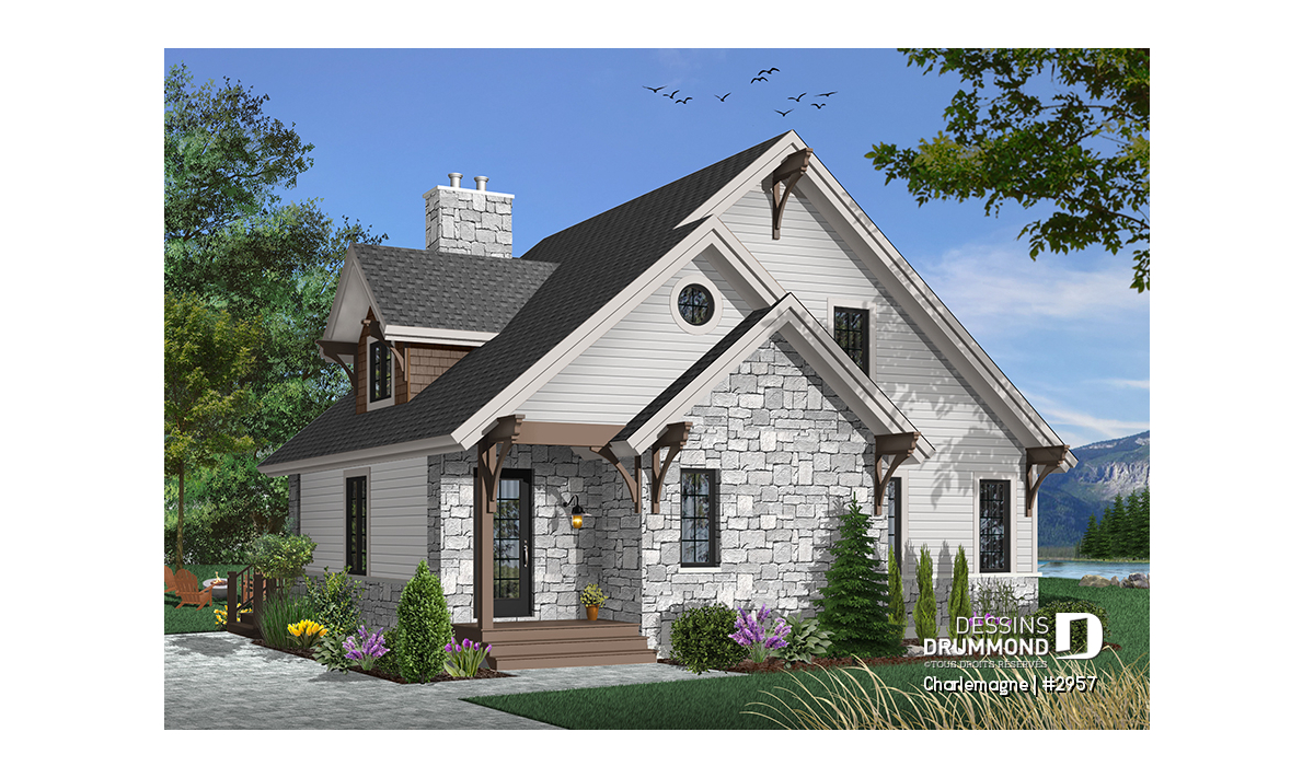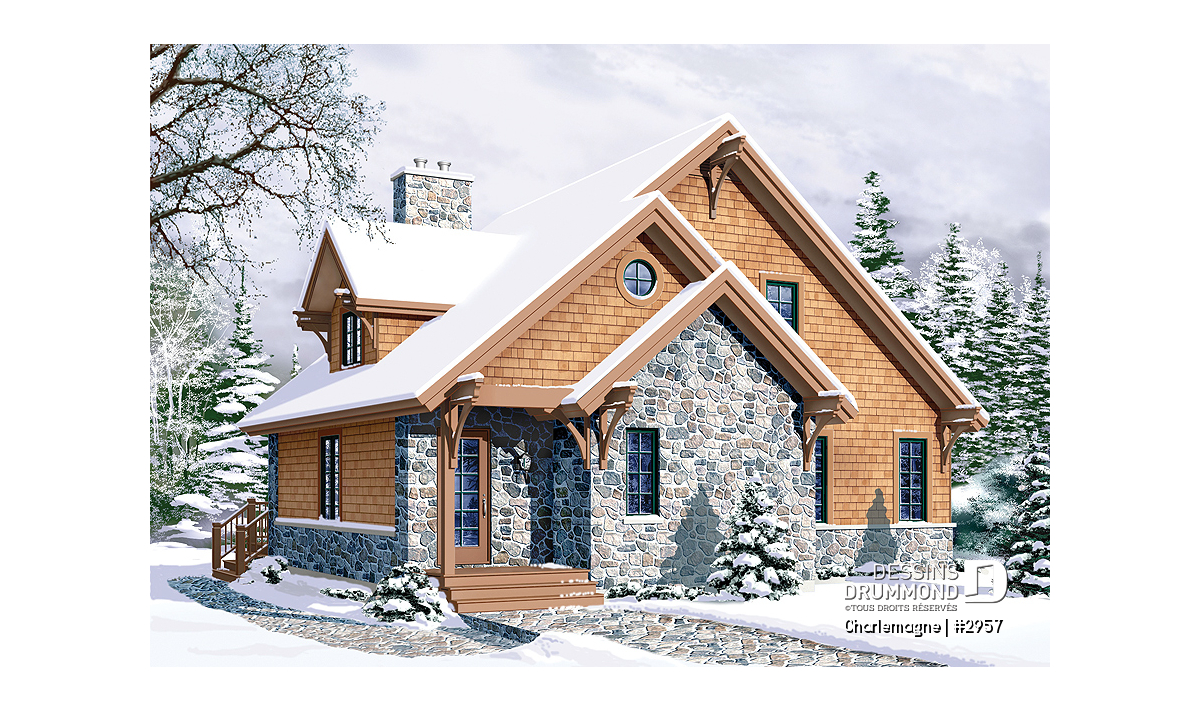 Sous-sol aménageable - Modèle de chalet rustique, 3 chambres, foyer, mezzanine, aire ouverte, vestibule avec grande garde-robe - Charlemagne