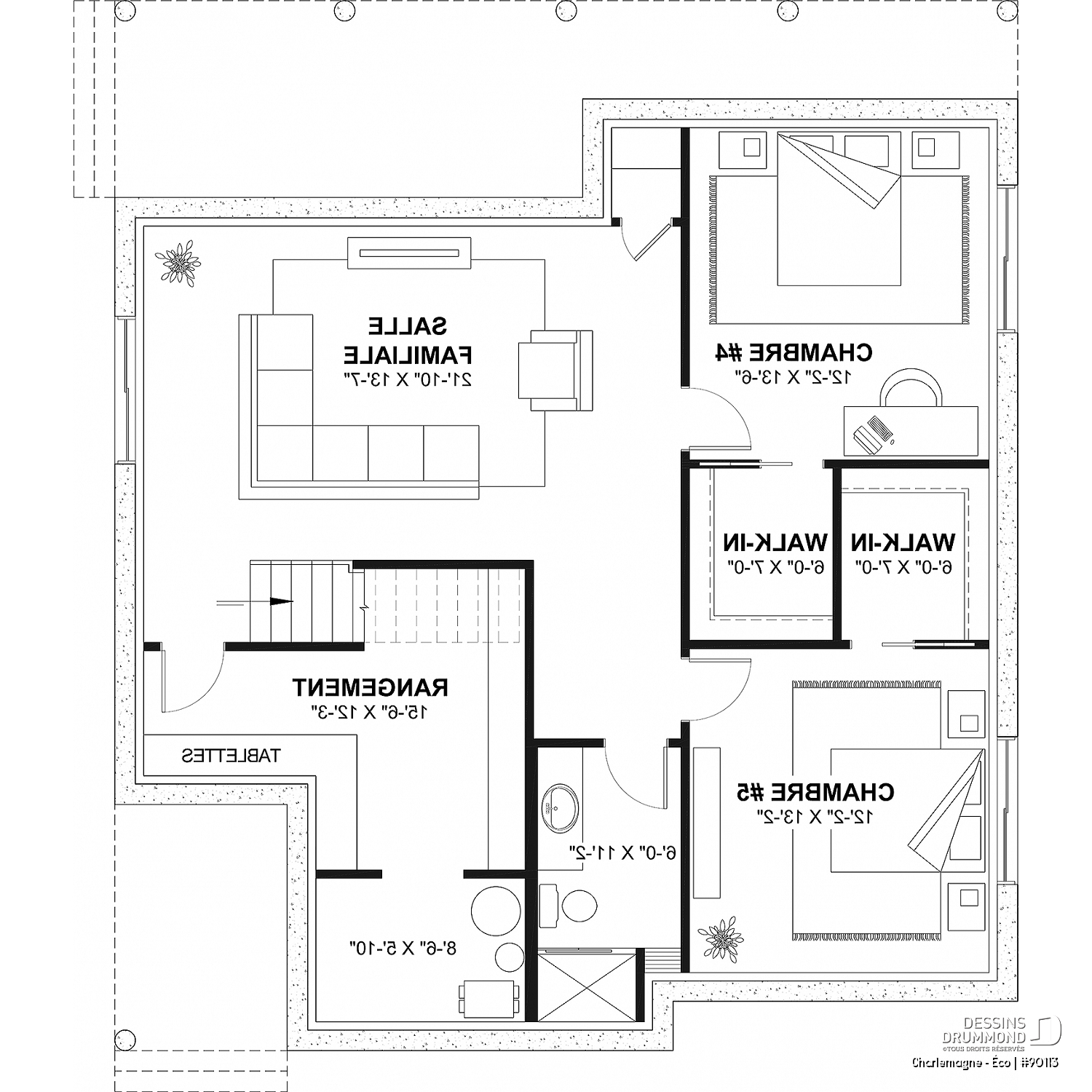 *Si vous souhaitez acheter le plan du sous-sol aménagé, veuillez sélectionner cette option dans le panier d'achat, dans la section "Sélectionner votre fondation". Si vous ne sélectionnez pas cette option, vous recevrez le sous-sol non fini, sans frais additionnel.
