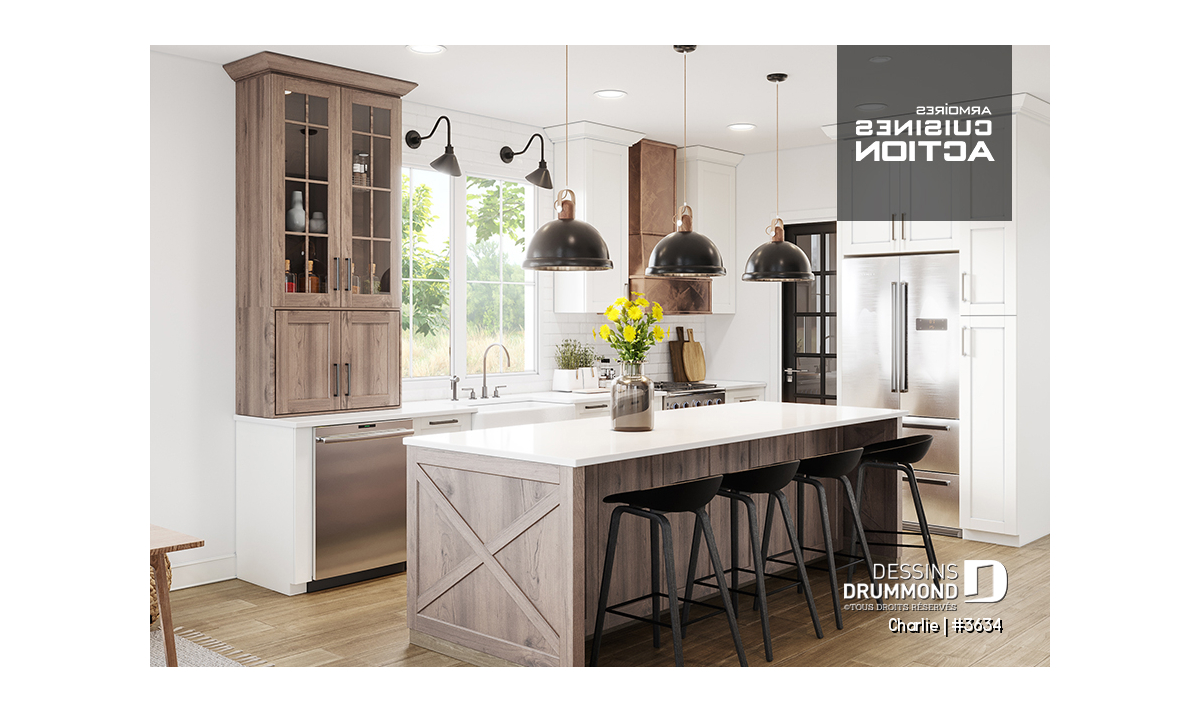 Découvrez la maison Farmhouse CHARLIE (#3634), un modèle qui réunit avec élégance les atouts les plus appréciés de nos plans favoris. Conçue pour combiner chaleur, confort et fonctionnalité, elle s’adresse autant aux familles qu’à ceux qui rêvent d’un espace lumineux et accueillant, où chaque détail a été pensé pour la vie quotidienne.