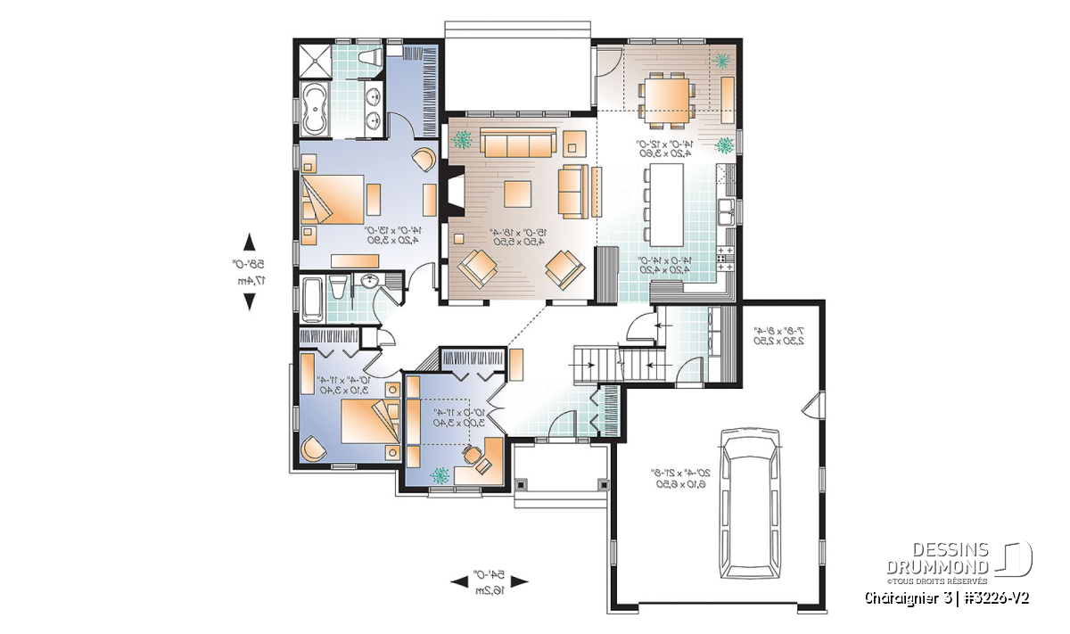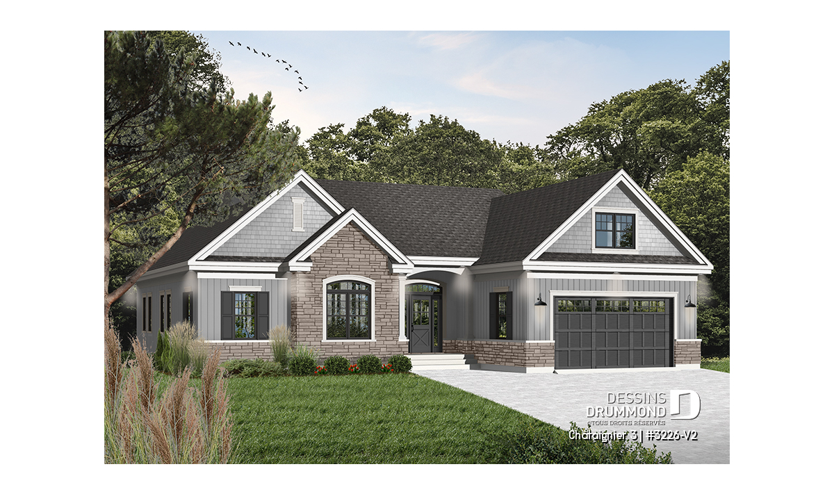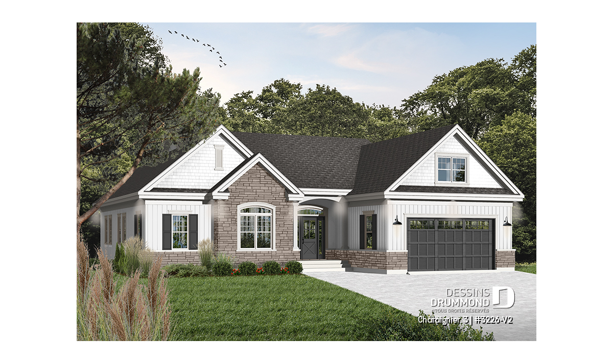 Plan de maison ranch avec garage double.