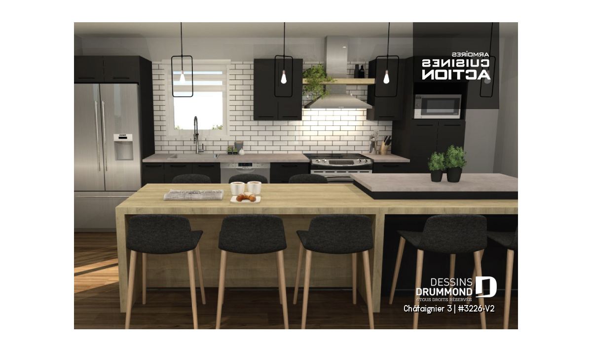 Cuisine avec îlot imposant.