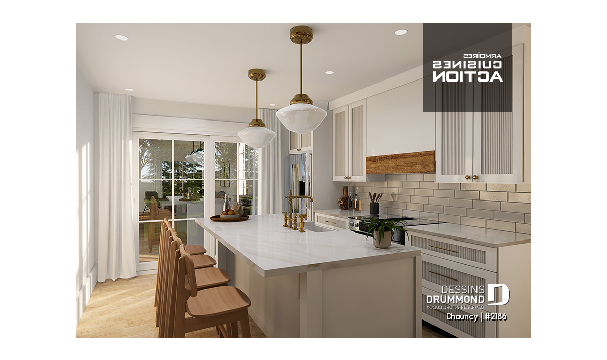 Cuisine avec grand îlot central.