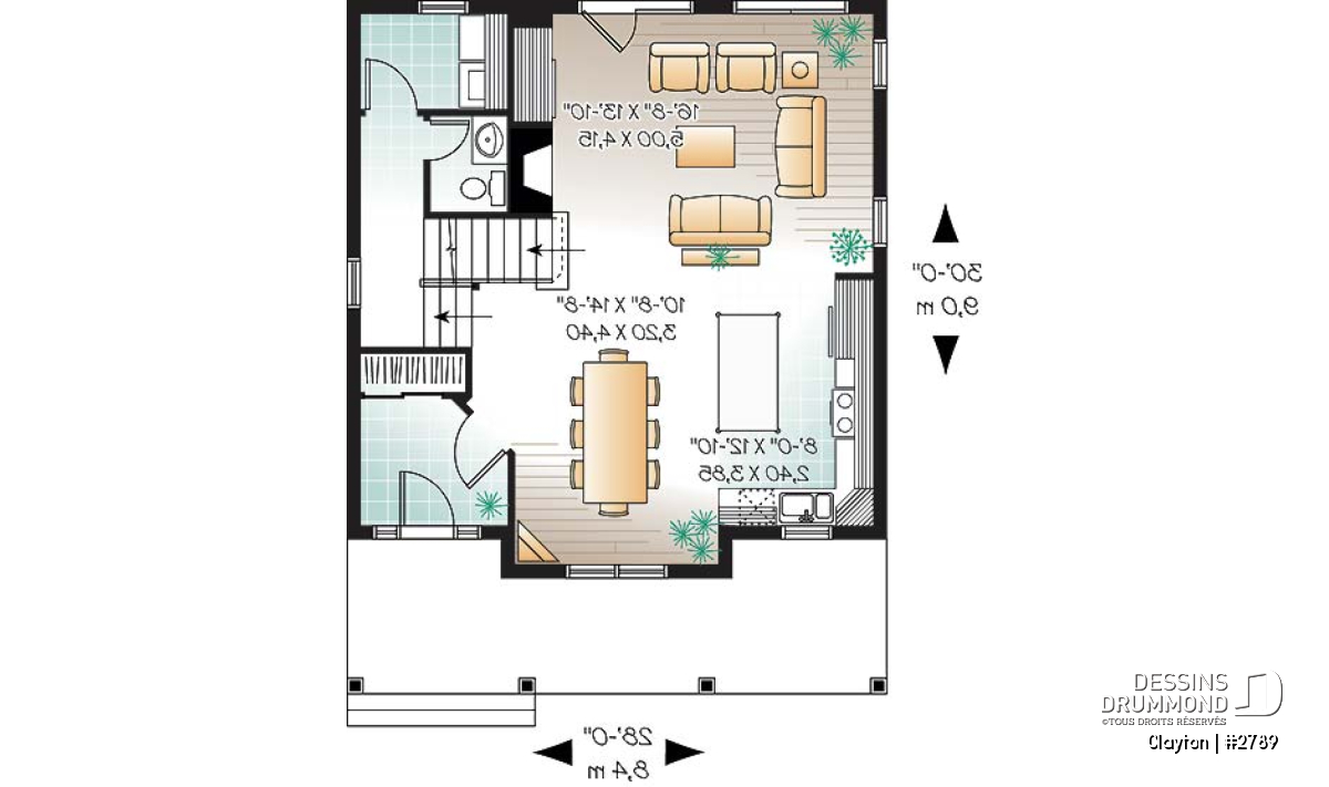 S’il est un plan qui plaira assurément, c’est bien celui-ci avec des lignes sobres, une toiture plutôt simplifiée, une fenestration abondante et bien équilibrée ainsi qu’une galerie avant plus qu’accrocheuse. De plus, l’originalité, tout comme la logeabilité dont on fait part sur ce modèle, proviennent de l’aménagement intérieur. Constatons-le sans plus tarder.