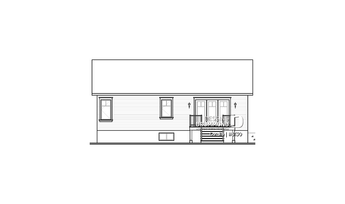 Vue avant - MODÈLE DE BASE - Bungalow avec plafond cathédrale, 3 chambres, grande cuisine et bas coûts de construction - Coralie