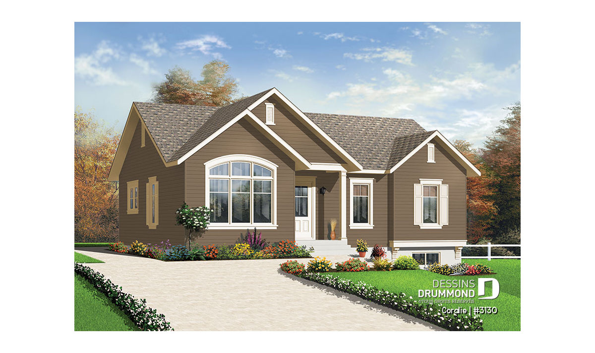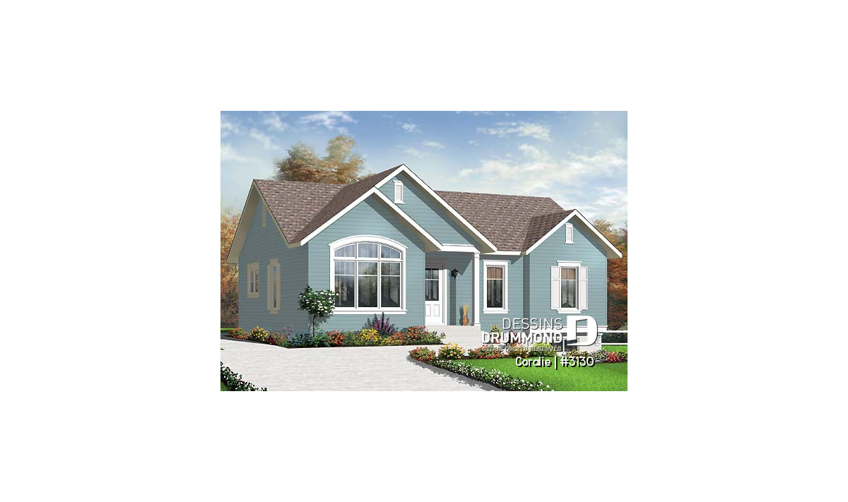 À l’instar du modèle 3131, celui-ci propose aussi un extérieur aux lignes attrayantes par le biais d’un équilibre des pignons et d’un bon dosage d’ouvertures dont cette belle fenêtre arquée qui, comme on pourra le constater lors de notre visite, éclaire abondamment la salle de séjour.