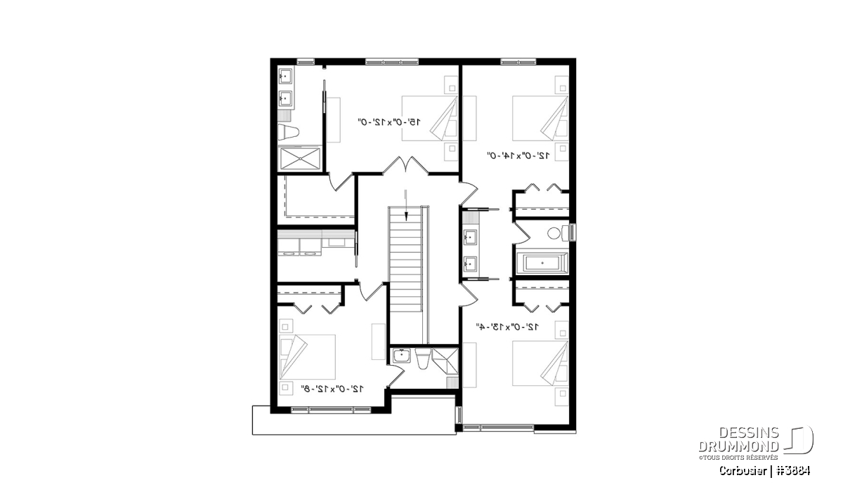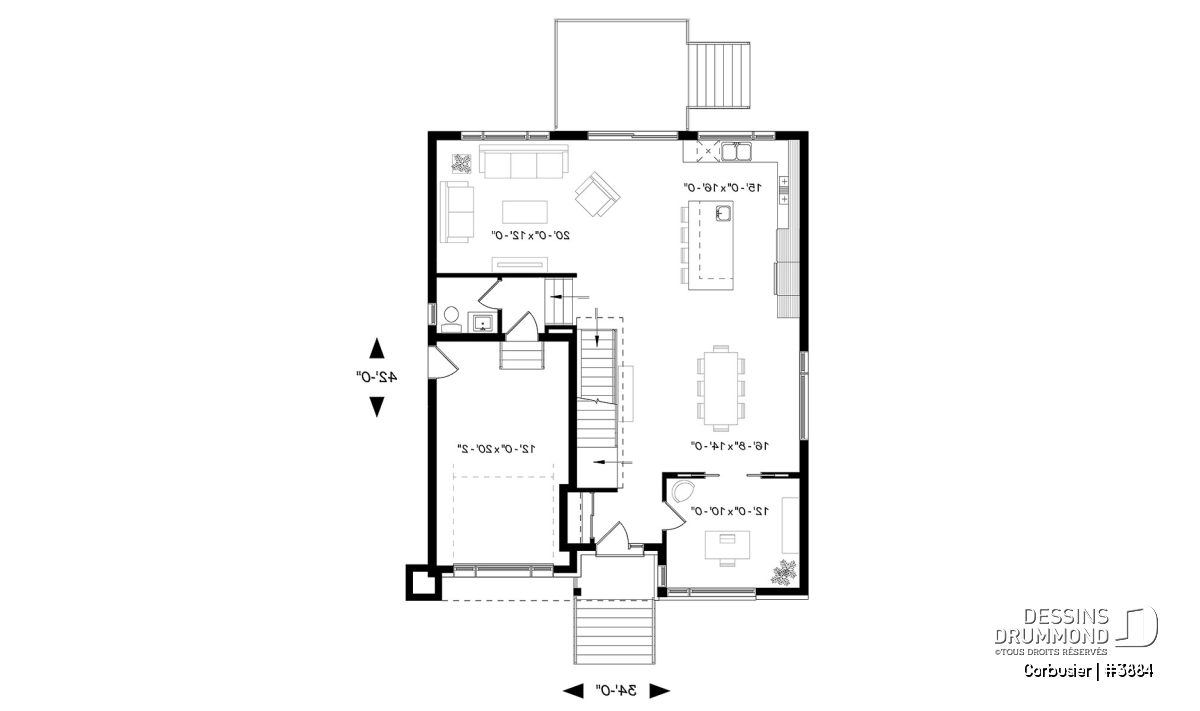 Pour réaliser des ajustements à ce plan de maison contemporaine # 3884, veuillez nous contacter au 1-800-567-1413 ou visitez la section « contact » de notre site internet!