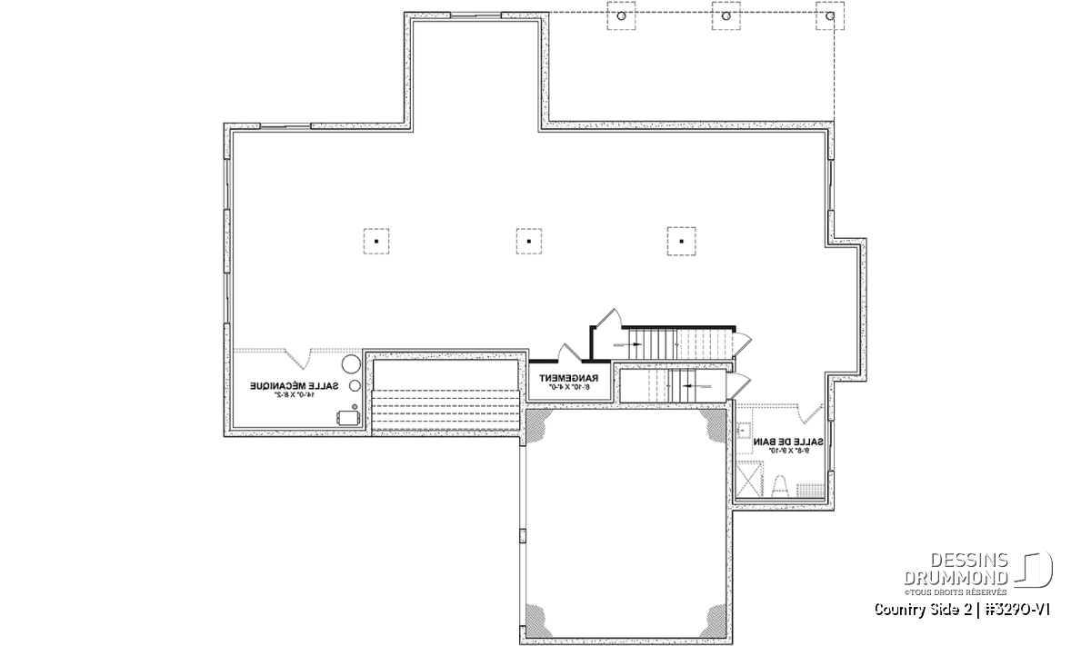 Sous-sol non fini, à ménager selon vos besoins. Autres types de fondation disponibles pour tous nos plans.