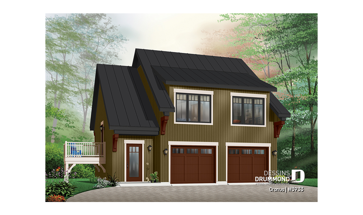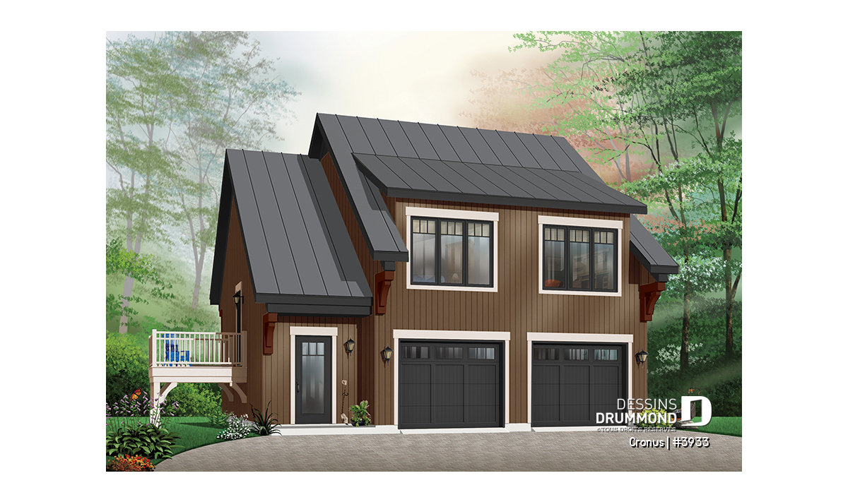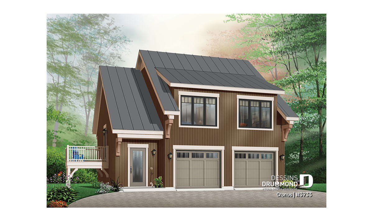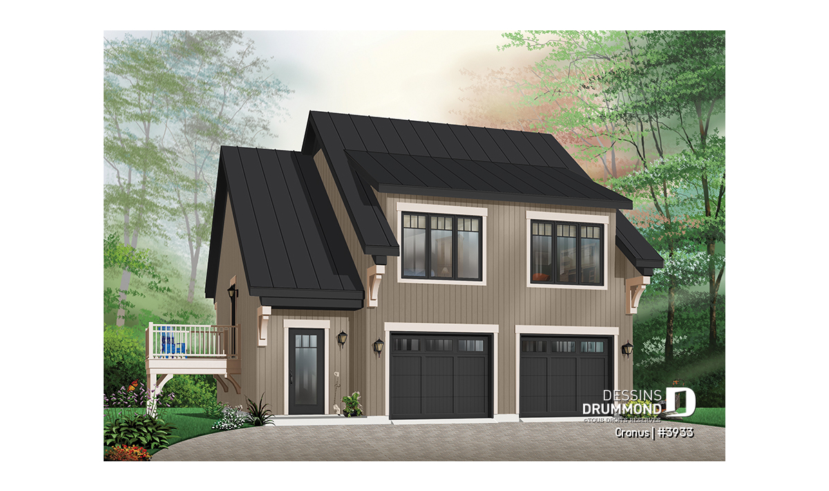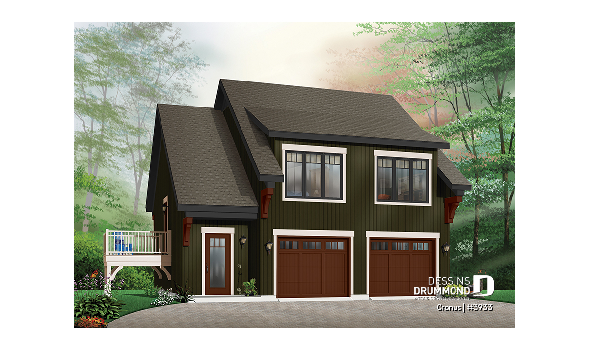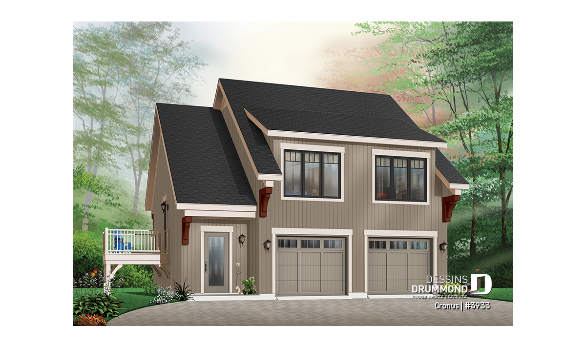 Étage - Plan de garage double de grand format, logement 2 chambres  à l'étage avec balcon, buanderie et plus - Cronus